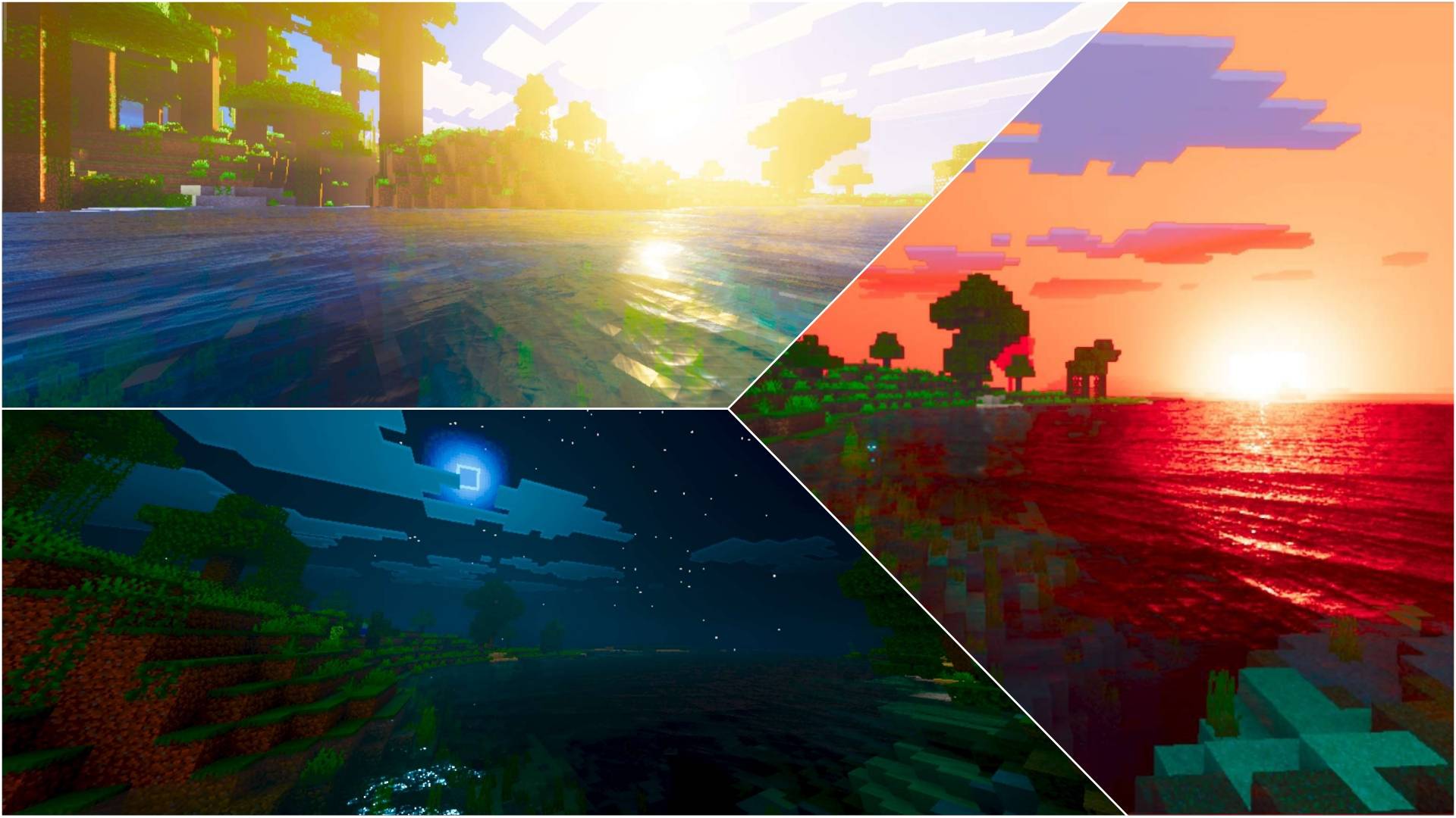 Luvid Visual Refined Shader (1.21) changes the lighting, physics, and atmosphere of the game. Sunlight and moonlight are warmer with reflection effects. Thick fog and light rays create depth in the environment. Water is made clearer with smoother wave movement. The surfaces of the blocks have a rougher texture and a more pronounced metallic effect. Colors and contrast are adjusted for sharper visuals.