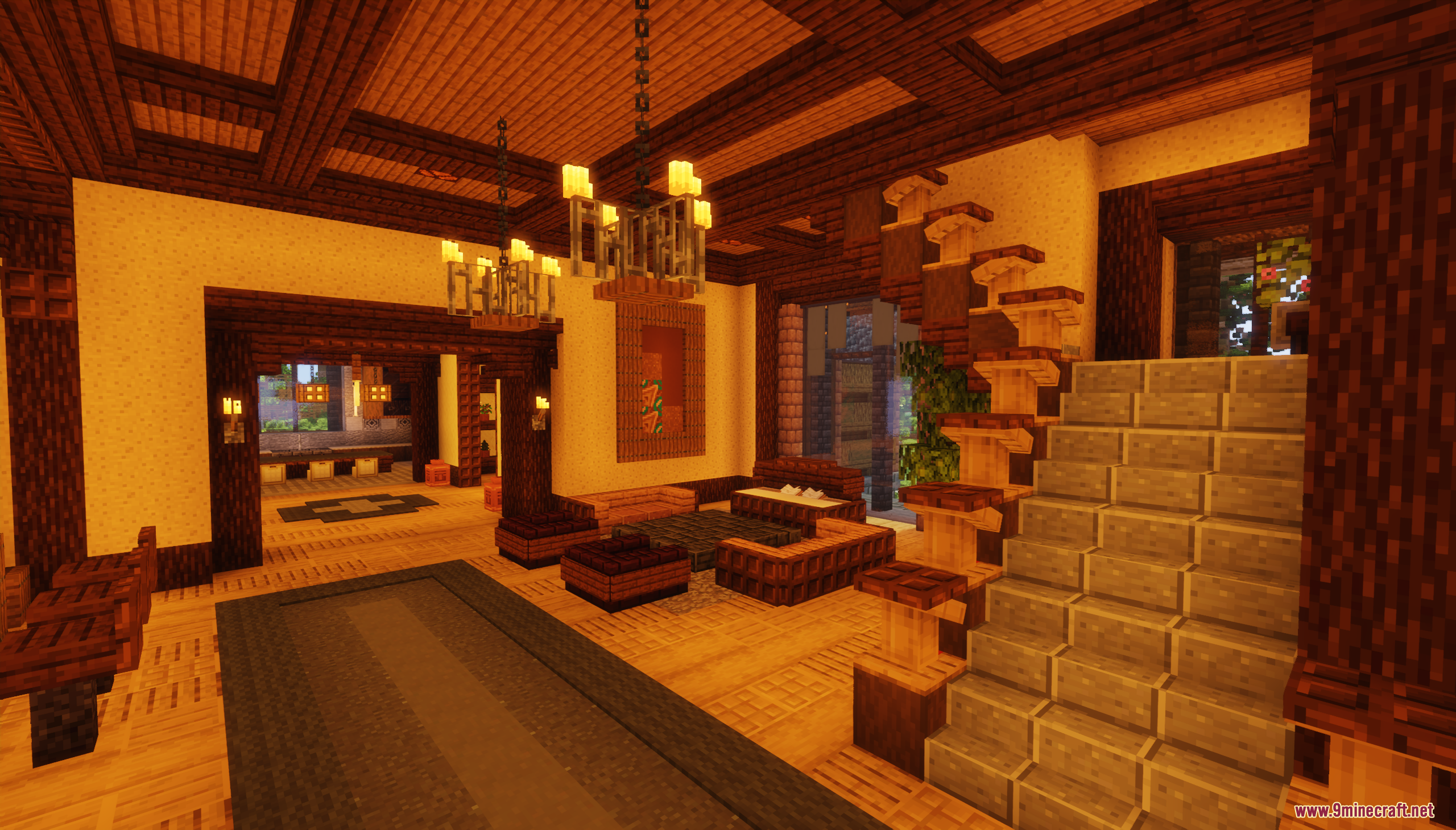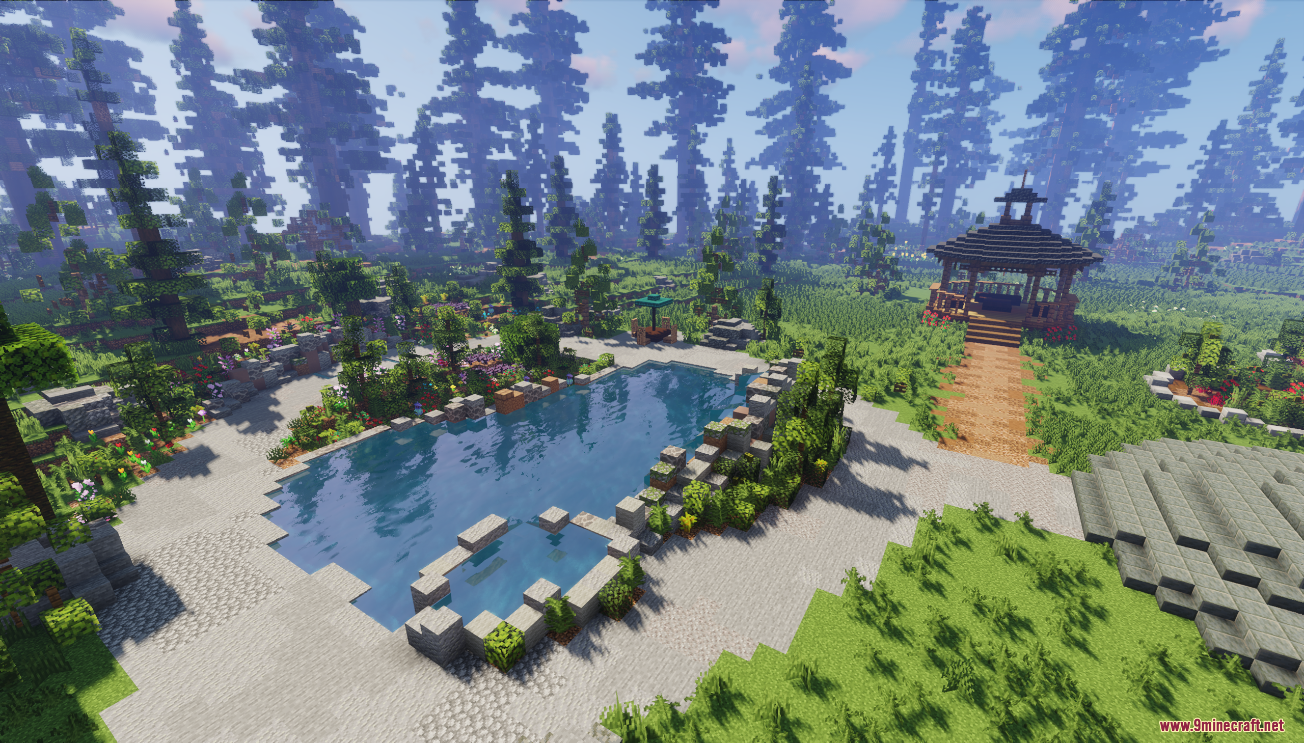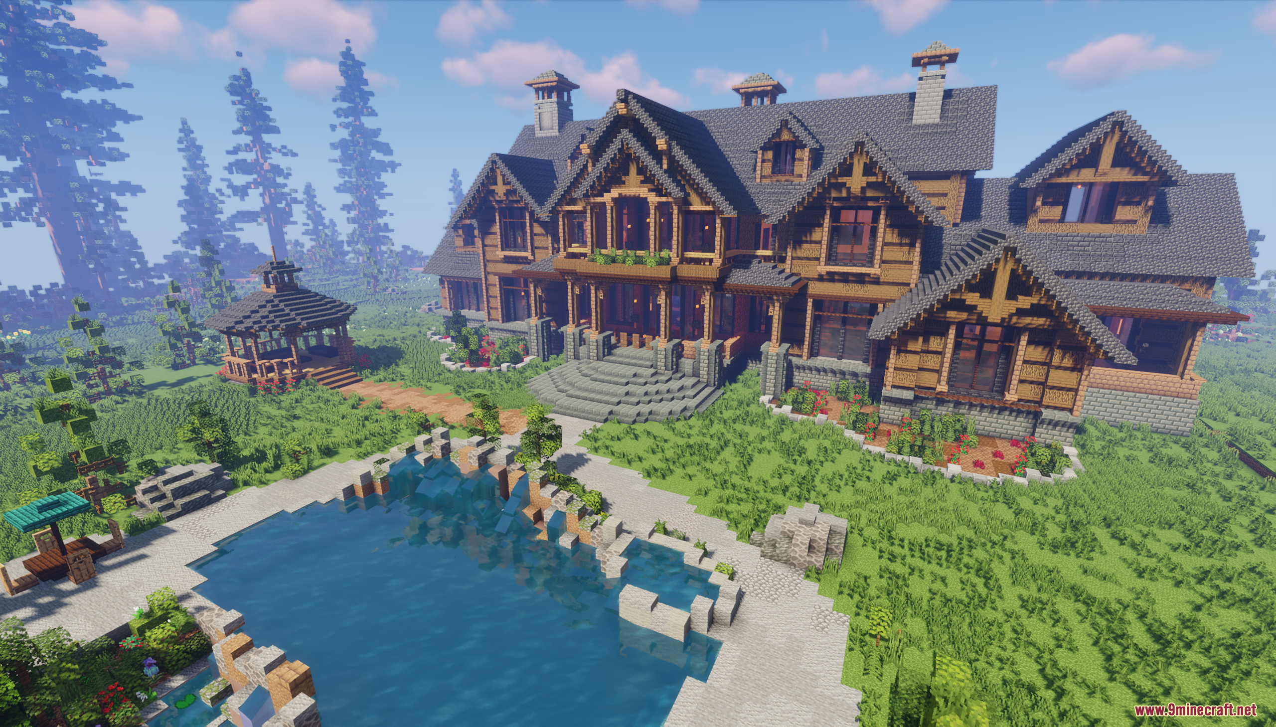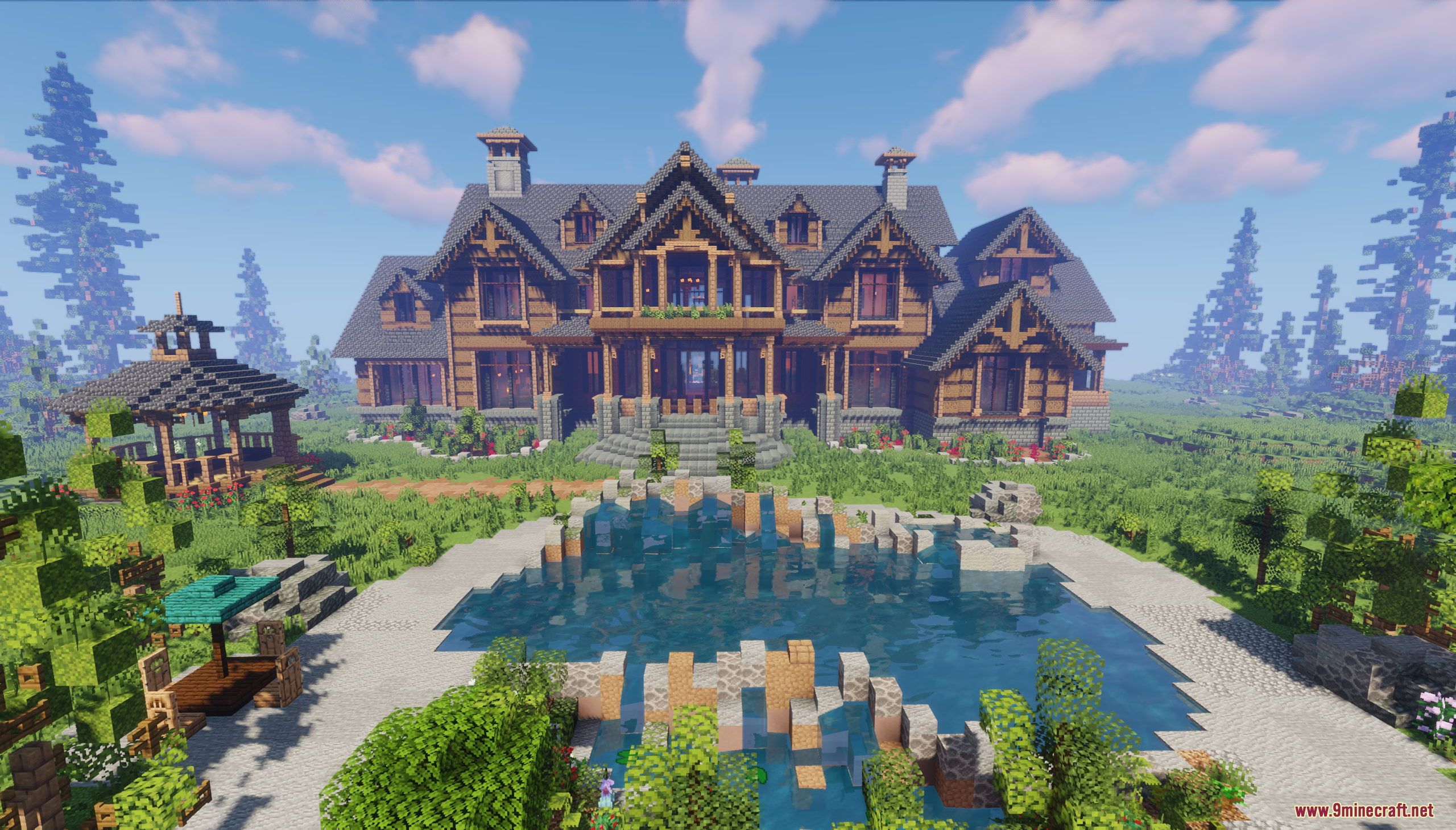 Luxury Cabin Map (1.21.10, 1.20.1) brings players into a warm and elegant mountain retreat surrounded by serene nature. This detailed build features a grand wooden mansion with stone foundations, cozy living spaces, and beautifully crafted interiors filled with natural light. Outside, the peaceful pond, gazebo, and lush garden paths create a relaxing atmosphere perfect for exploration or inspiration. Whether you’re looking to enjoy a scenic getaway, roleplay, or take design ideas for your own builds, this map is a perfect choice.
