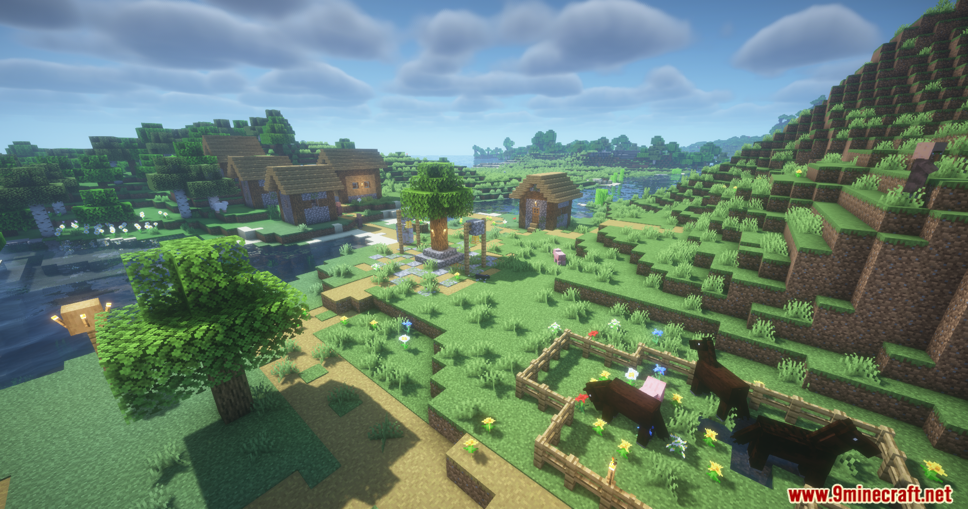 - Automatically adds bridges, roofs, fences, furniture, and stairs using materials from supported mods.