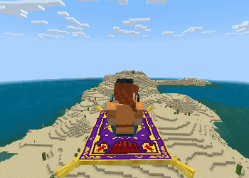 Magic Carpets Addon (1.21) adds a magic carpet that can be used to fly. When using it, just look in the direction you want to fly to control the carpet to move. Each carpet can carry up to two people, just bend down to pick up the flying carpet after use.