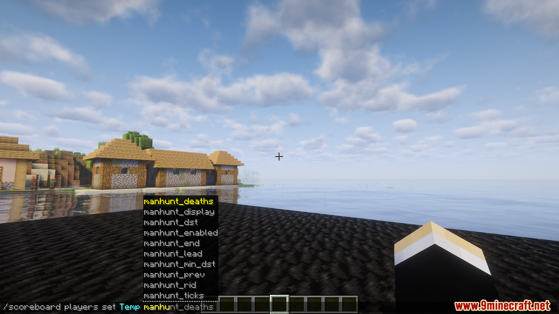 /team join hunters player_name– Join Hunters team./team join runners player_name– Join Runners team./function manhunt:start_game– Start the game./scoreboard players set Temp manhunt_lead 45– The start delay can be changed from the default of 45./scoreboard players reset Temp manhunt_min_dst– The minumum tracking distance./scoreboard players set Temp manhunt_min_dst 400– If you want a distance of 20 you will use the value 20 * 20 = 400/scoreboard objectives setdisplay sidebar– Scoreboard.