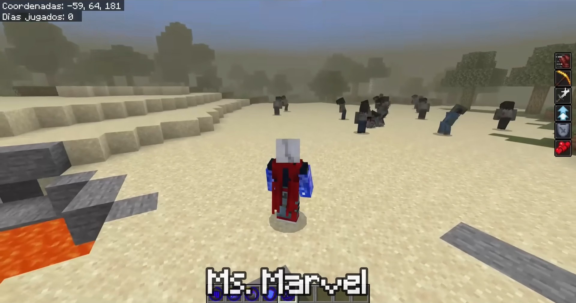 Marvel Zombies Addon (1.21) replaces vanilla zombies and skeletons with over 20 Marvel-inspired zombie variants (e.g., Zombie Iron Man, Zombie Hulk, Zombie Wolverine, Zombie Thanos, Zombie Spider-Man, Queen of the Dead), which spawn more aggressively after the first three days-initially only at night/dark, then daytime, with deadlier types at night.