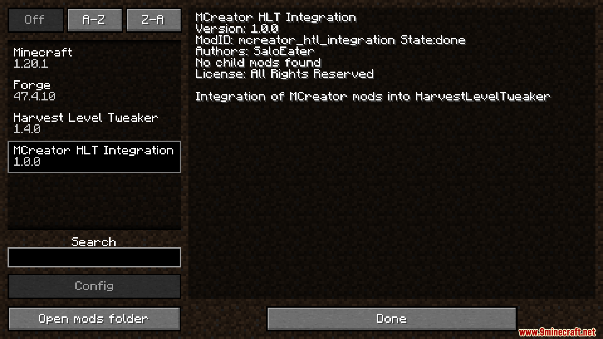 - Provides direct integration between Harvest Level Tweaker and MCreator.