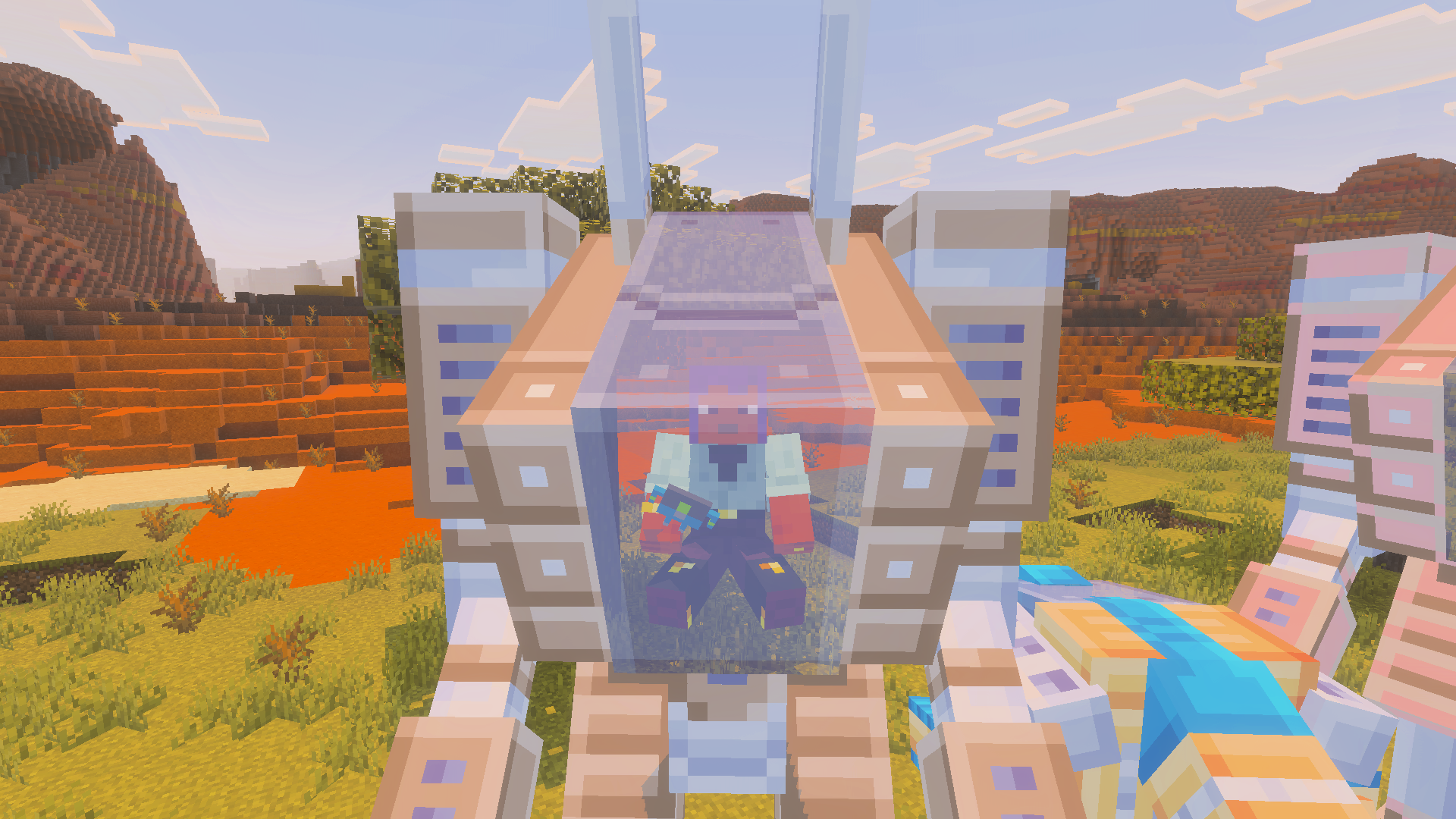 Mech Robots Addon (1.21) adds robots with cockpits. They can protect buildings or collect underground resources. They can also be controlled as vehicles and create shelters.