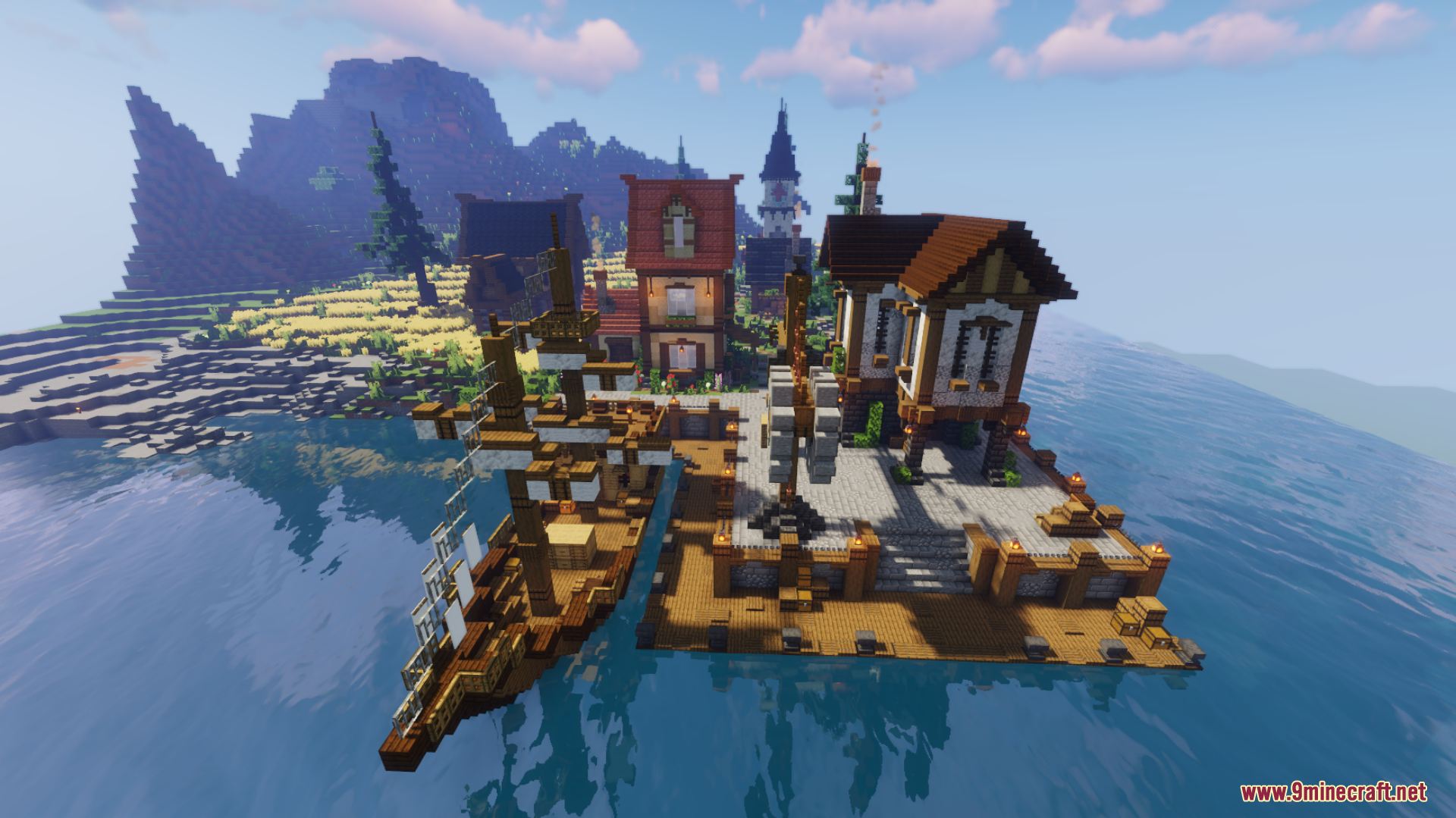 Medieval Seaside Village Map (1.21.11, 1.20.1) transports you into a warm, picturesque harbor town nestled between calm waters and rolling medieval landscapes. This charming build features a detailed dock complete with a rustic trading ship, quaint timber-framed houses, wheat fields swaying behind the village, and a tall church tower watching over the shoreline. With its handcrafted textures, peaceful atmosphere, and thoughtful layout, this map is perfect for roleplay, survival worlds, or anyone wanting to add a beautifully immersive medieval settlement to their Minecraft world.