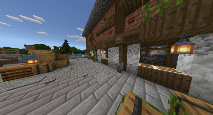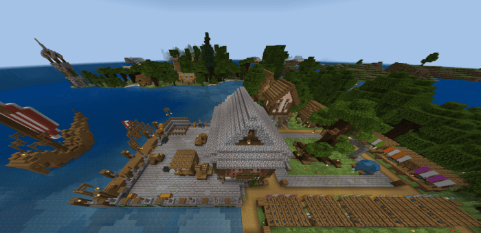 Medieval Town Map (1.21) brings a village located on the riverbank. Players can play in a small town or expand and build a city according to their ideas.