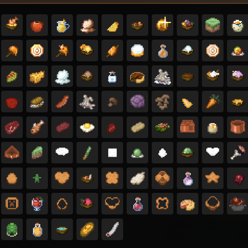 - Special dishes like Slime Pudding, Magma Cream Pudding and Golden Slime Balls.