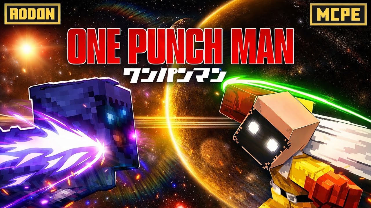 One Punch Man Addon (1.21) is an RPG overhaul inspired by One Punch Man, featuring character races, stat progression, custom combat, and awakenings. Updates add heroes/villains progressively (Saitama, Genos, Garou, Sonic); play survival, level up via mob kills.