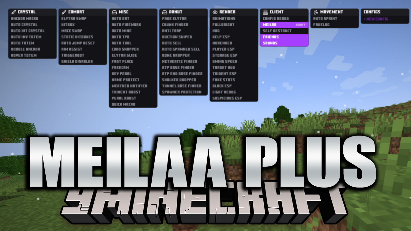 MeiLaa Plus Client Mod (1.21.11) is a very aggressive PvP client built mainly for crystal and anchor fighting, with tons of automation and server-focused tools. It mixes combat power, survival helpers, and exploit-style features to give a strong advantage in both PvP and SMP servers.