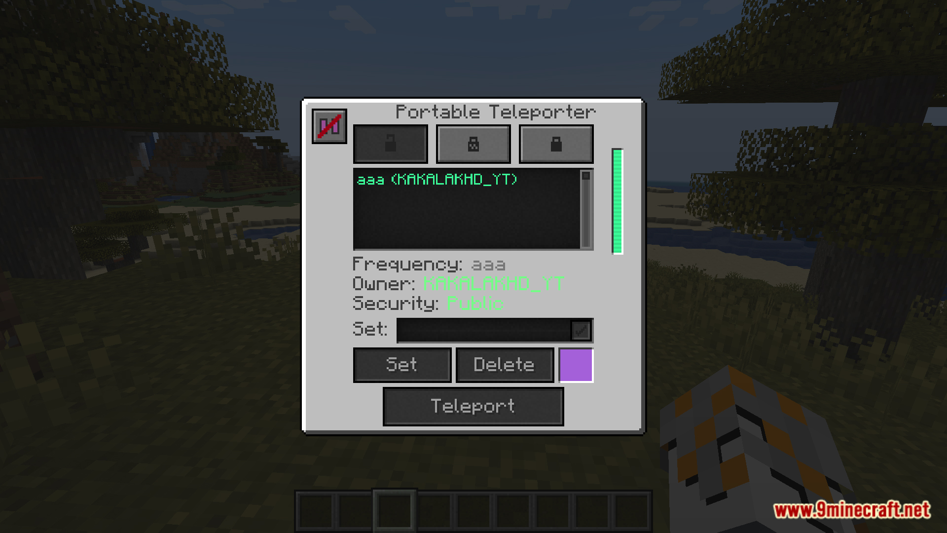 - Teleporter Slot: Use Portable Teleporter from Curios slot, default key: U.