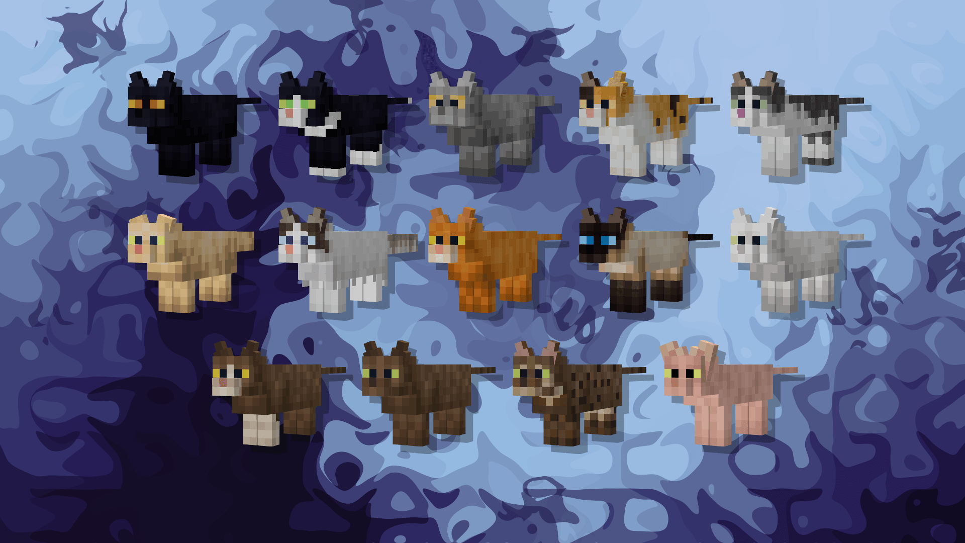 Meow Society Texture Pack (1.21) changes the appearance of cats and ocelots to match real-life species. The system adds many new variations, including red pandas and raccoons. Many cat types from social media or movies are included in the list. Appearance changes are made by naming the species or searching for existing species in specific areas.