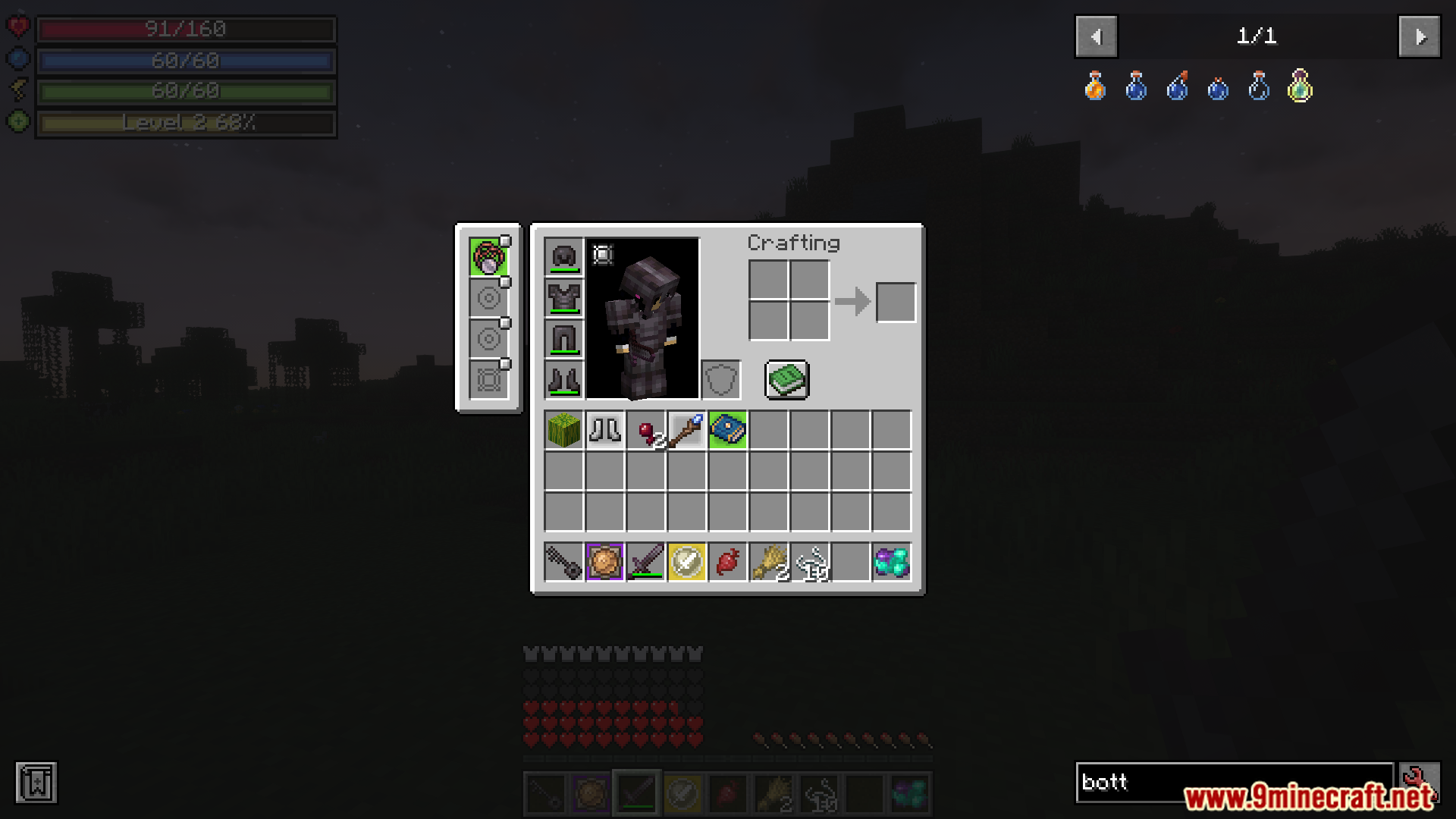 - Adjusts Mine and Slash to a lighter version, adding bonus damage instead of overriding, lowering level scaling, hiding GUI elements, and reducing stat/weapon requirements for vanilla-friendly modpacks.