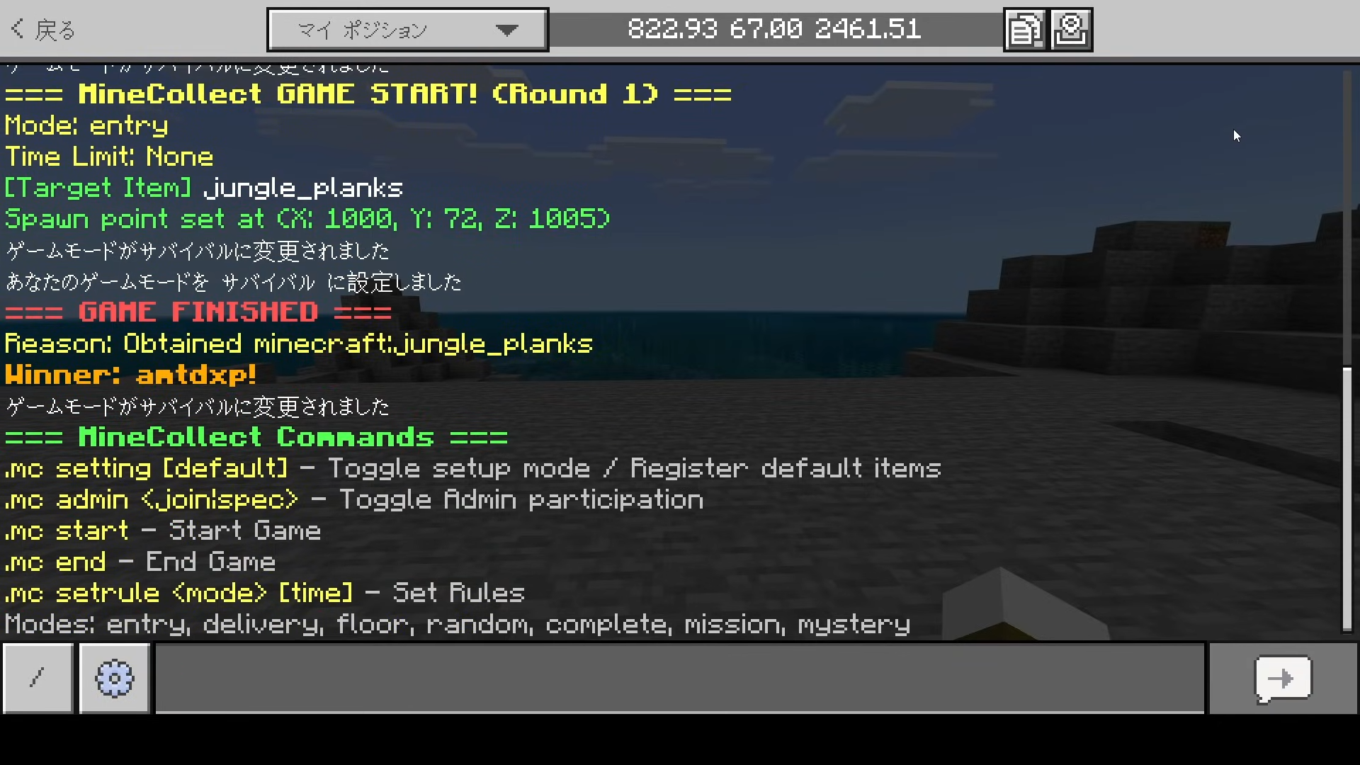 MineCollect Addon (v26) adds item hunting gameplay to the survival mode. Players compete to earn points and rankings on the leaderboard by collecting required items. The system offers 7 different game modes including speed races, transporting items to the finish line, or completing secret item lists.
