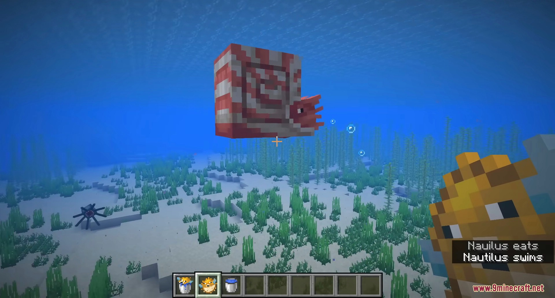 - Nautilus is a neutral aquatic creature found in oceans. It can be tamed using pufferfish or a bucket of pufferfish and can be ridden when equipped with a saddle.