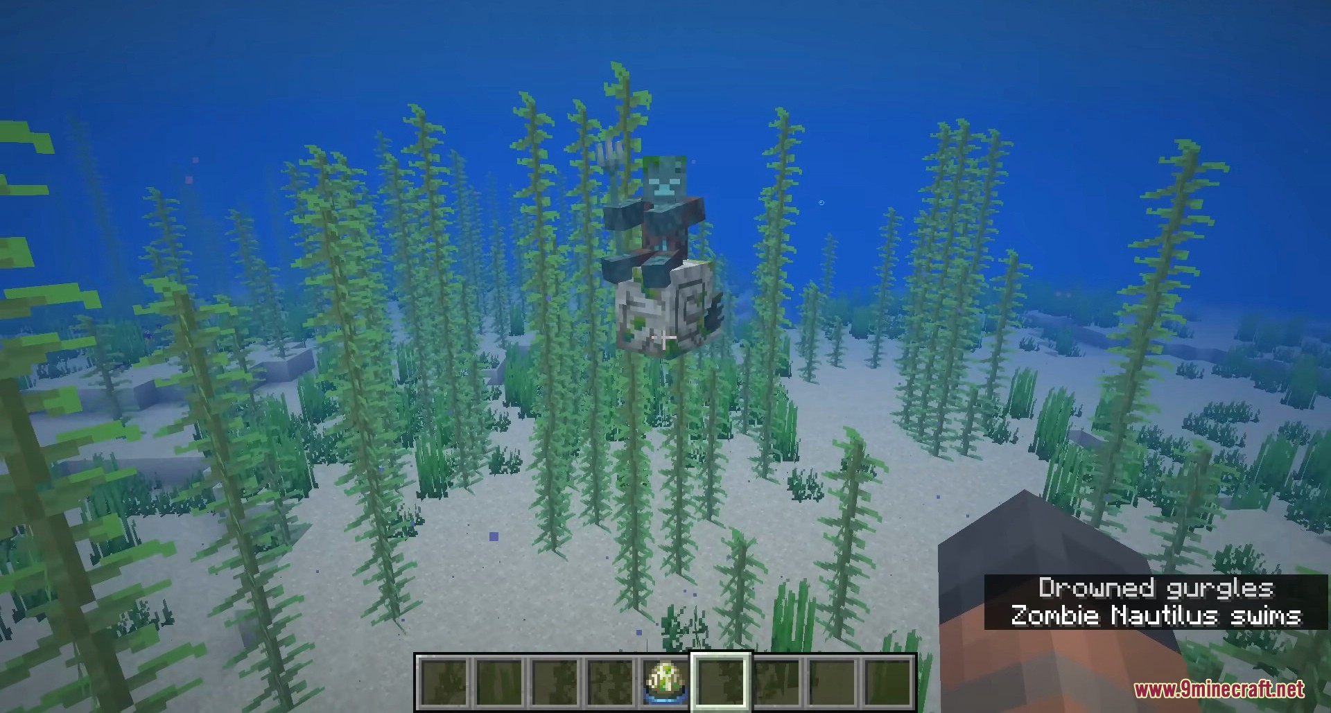 - Zombie Nautilus often spawn with Drowned riding them and holding spears. When the Drowned is killed, the Zombie Nautilus becomes neutral and can be tamed.