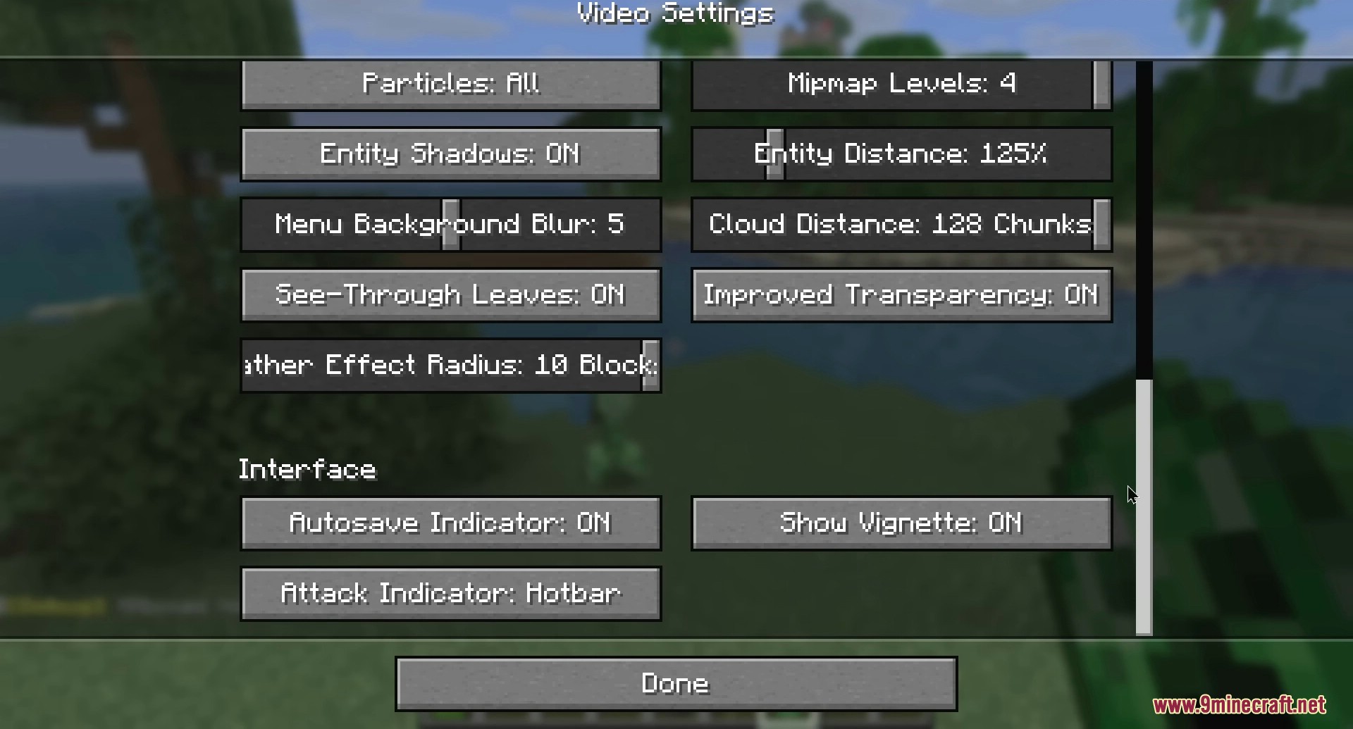 - Mipmaps now apply to all blocks (like vines, leaves, rails), improving visual quality at distance.