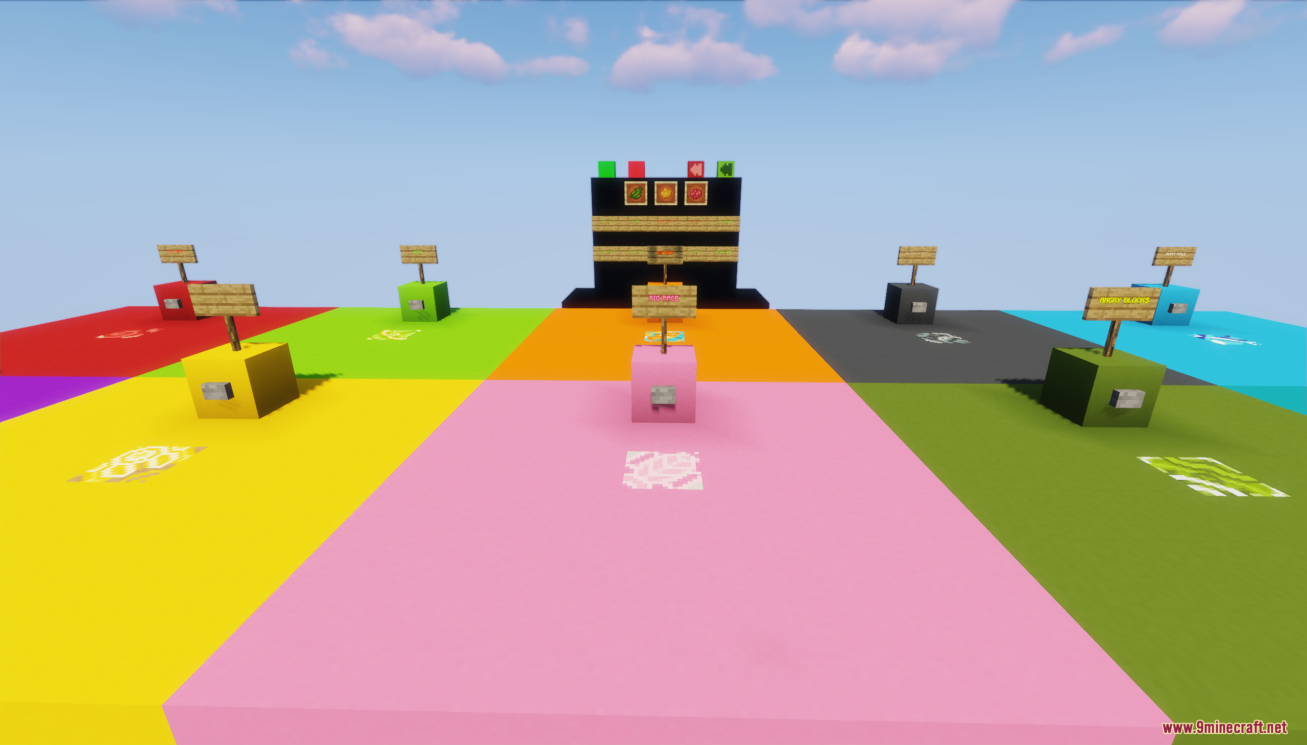 Mineparty Map (1.21.11, 1.20.1) is a massive arcade-style playground built for social fun and friendly competition. Designed to support 2 to 12 players, this map puts more than ten unique minigames at your fingertips – from races and reflex challenges to creative competitions and score chases. Every game is tested and balanced, with an inventory UI system that tracks your stats and keeps score right in-game. All in all, MineParty brings the feel of a bustling arcade into Minecraft for endless multiplayer fun.