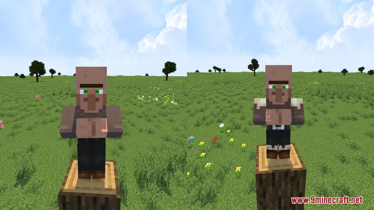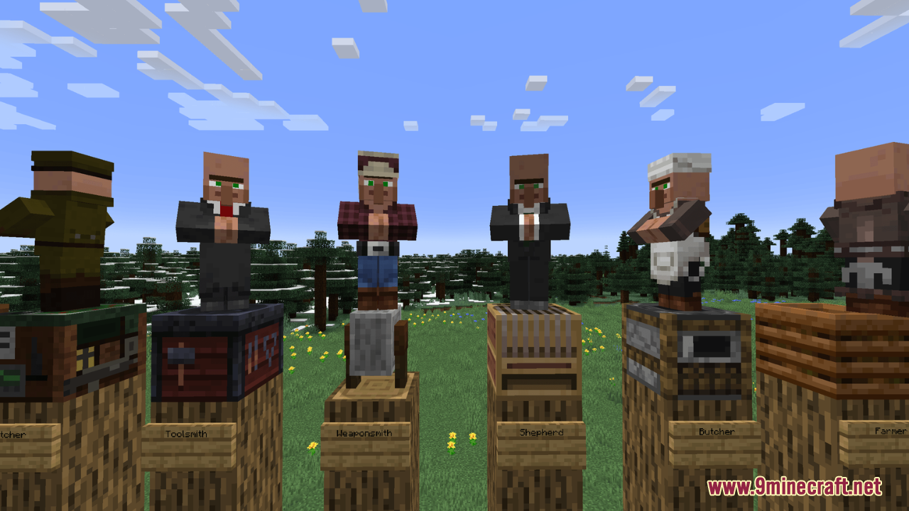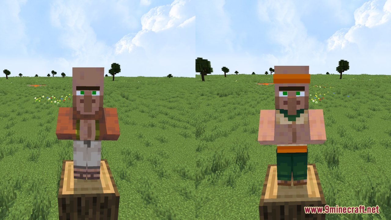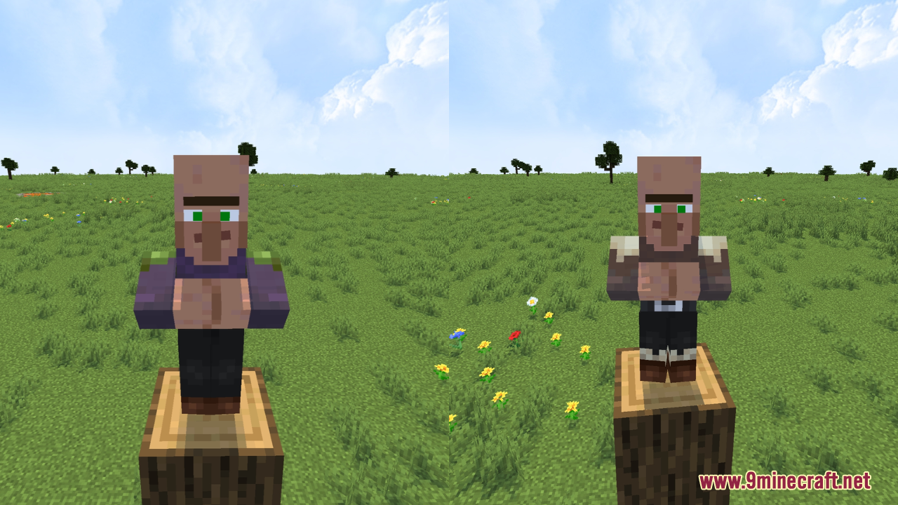 Modern Villagers Resource Pack (1.21.10, 1.20.1) simply reimagines the NPCs of Minecraft by giving your villagers, wandering traders, and associated village mobs a modern, stylish makeover – transitioning them from their classic robe-wearing look into more contemporary citizens. Because it pairs with the “Fresh Animations” ecosystem, it works best when you use it in tandem with the base animation pack or compatible mods to handle modern entity models and textures. Ideal for players who want their villages to feel more alive, modern, and visually engaging – whether you’re building cityscapes, role-playing, or simply craving a fresh look for your NPCs without altering core mechanics.