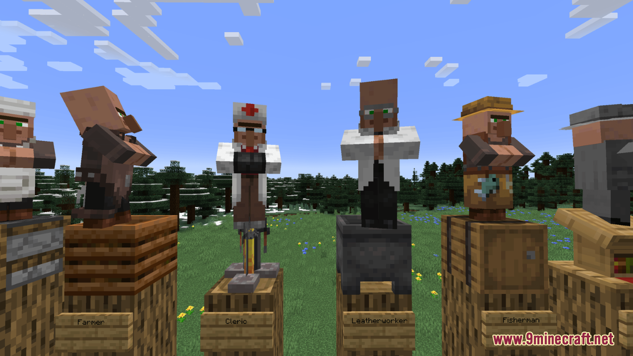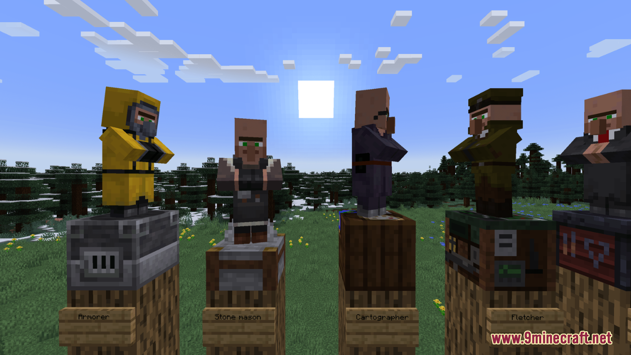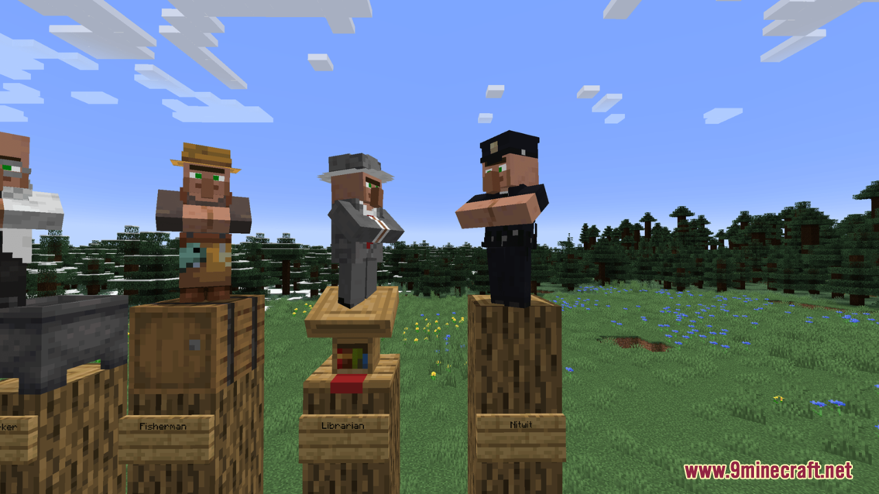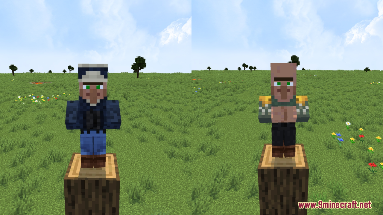 Modern Villagers Resource Pack (1.21.10, 1.20.1) simply reimagines the NPCs of Minecraft by giving your villagers, wandering traders, and associated village mobs a modern, stylish makeover – transitioning them from their classic robe-wearing look into more contemporary citizens. Because it pairs with the “Fresh Animations” ecosystem, it works best when you use it in tandem with the base animation pack or compatible mods to handle modern entity models and textures. Ideal for players who want their villages to feel more alive, modern, and visually engaging – whether you’re building cityscapes, role-playing, or simply craving a fresh look for your NPCs without altering core mechanics.
