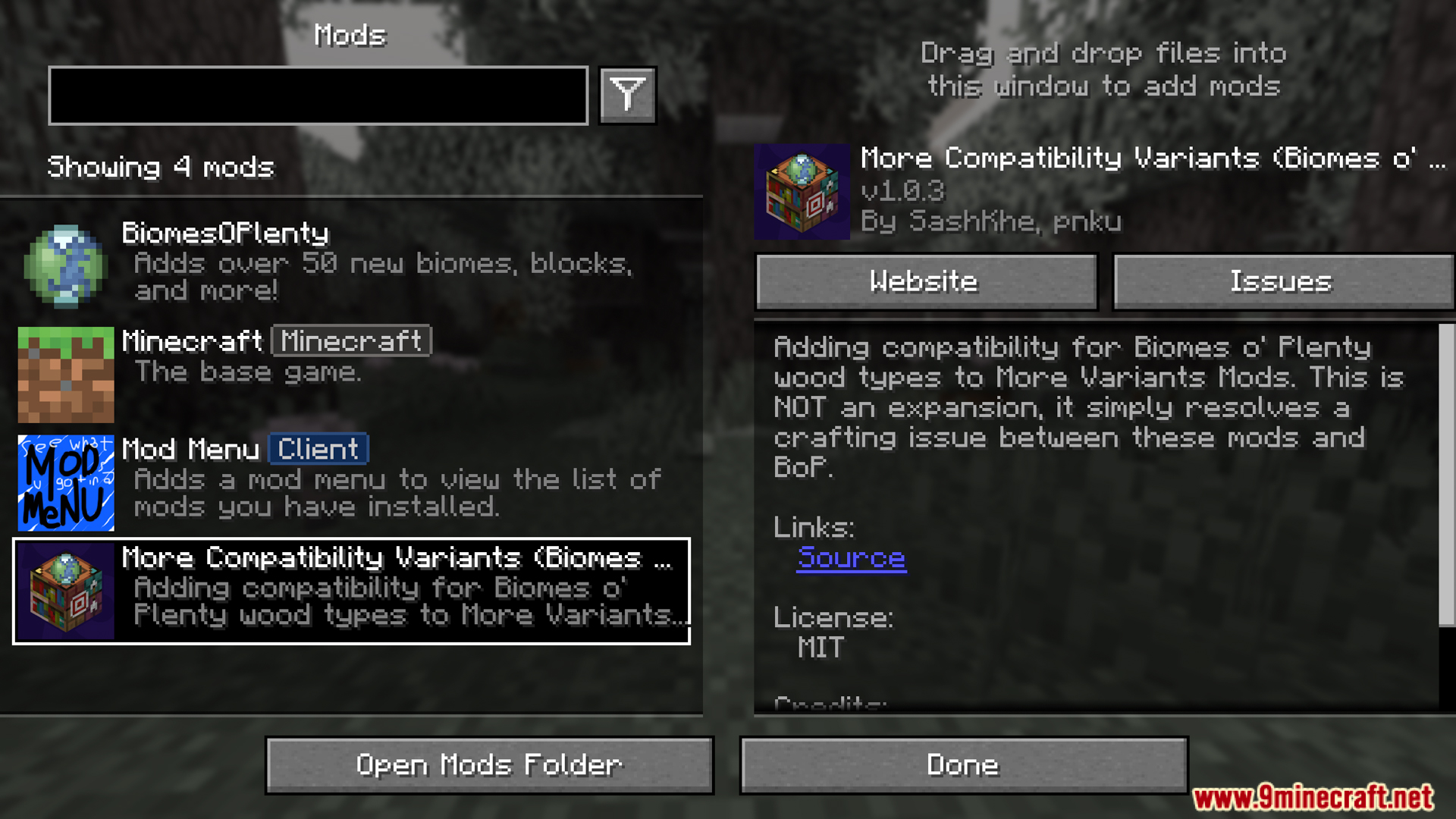More Compatibility Variants Biomes O Plenty Mod (1.21.11, 1.20.1) is a mod that supports compatibility between wood from Biomes o’ Plenty and mods in the “More Variants” series. When using Biomes o’ Plenty for a variety of rare woods and also using wood variation mods, without this compatibility, you’ll easily encounter errors when crafting items/wooden objects from Biomes o’ Plenty wood.
