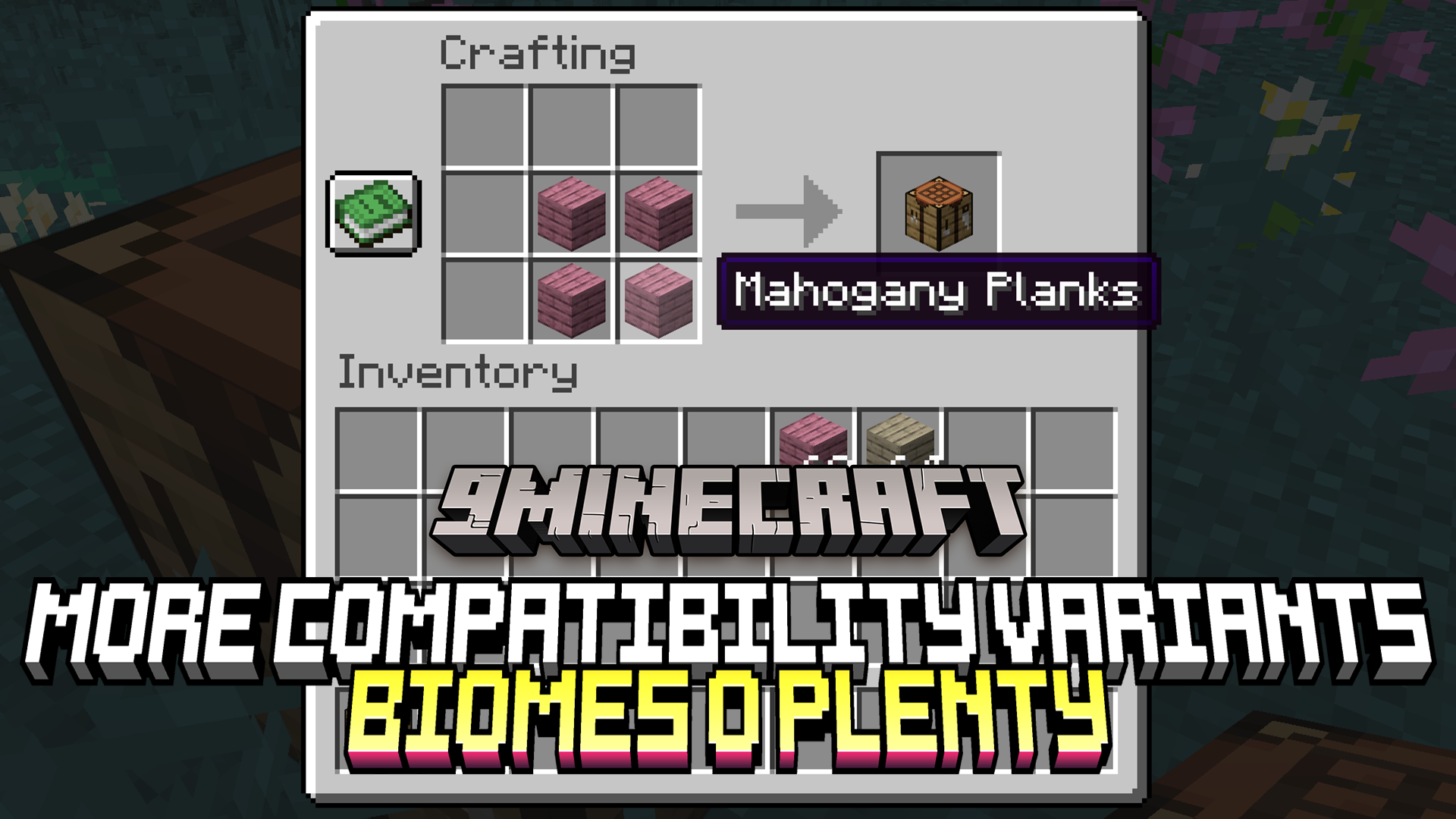 - Compat ensures that with wood from Biomes o’ Plenty, for example, plank, log, wood, slabs, etc., you can use it in vanilla recipes and recipes from the More Variants mods without crafting errors.