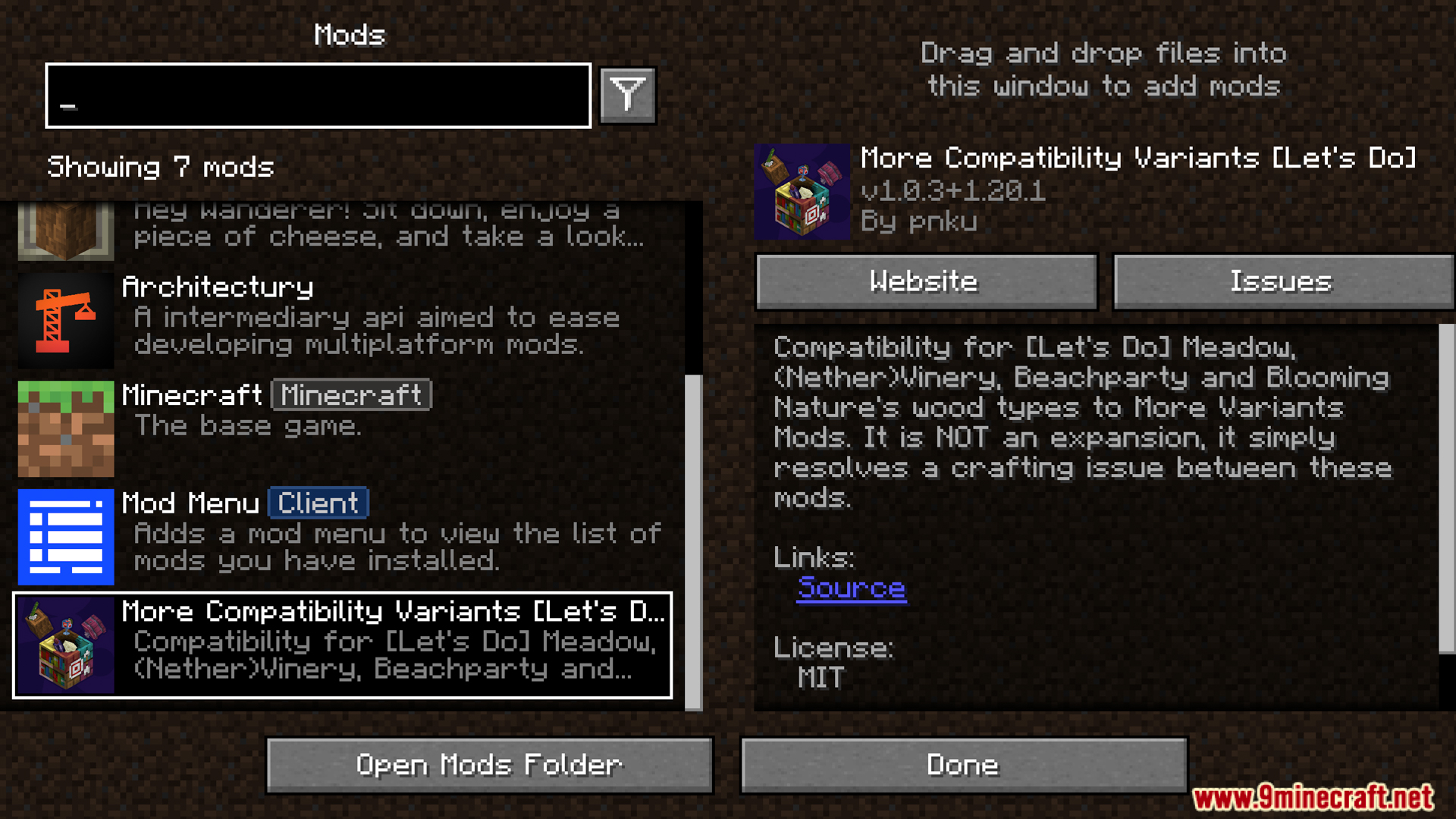 More Compatibility Variants Lets Do Mod (1.20.1, 1.20) is designed to let you use wood types from mods in the “Let’s Do” series, such as Meadow, Vinery, Beachparty, and BloomingNature. While still retaining the ability to craft vanilla/basic recipes, even when you install additional wood variant mods.
