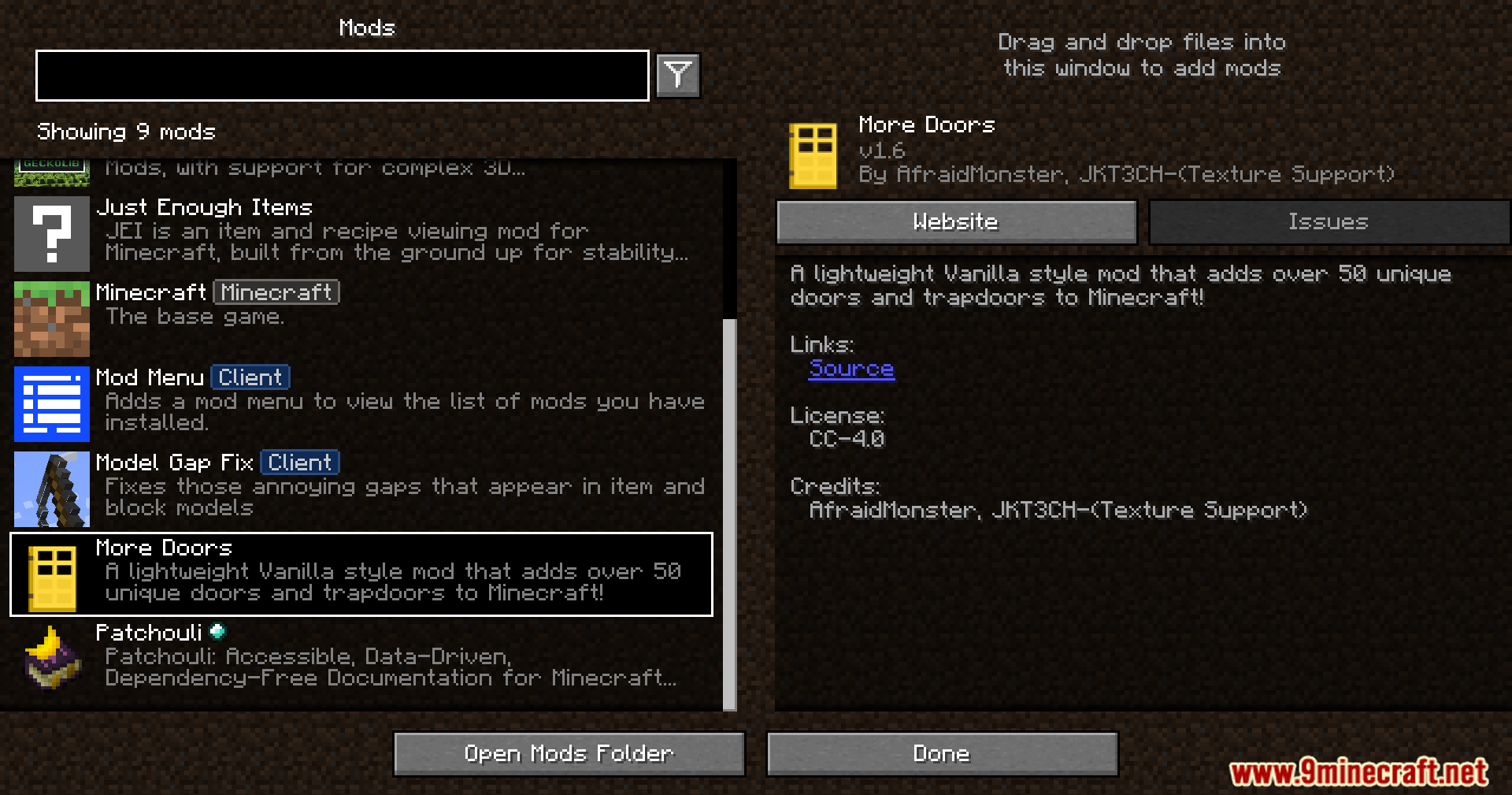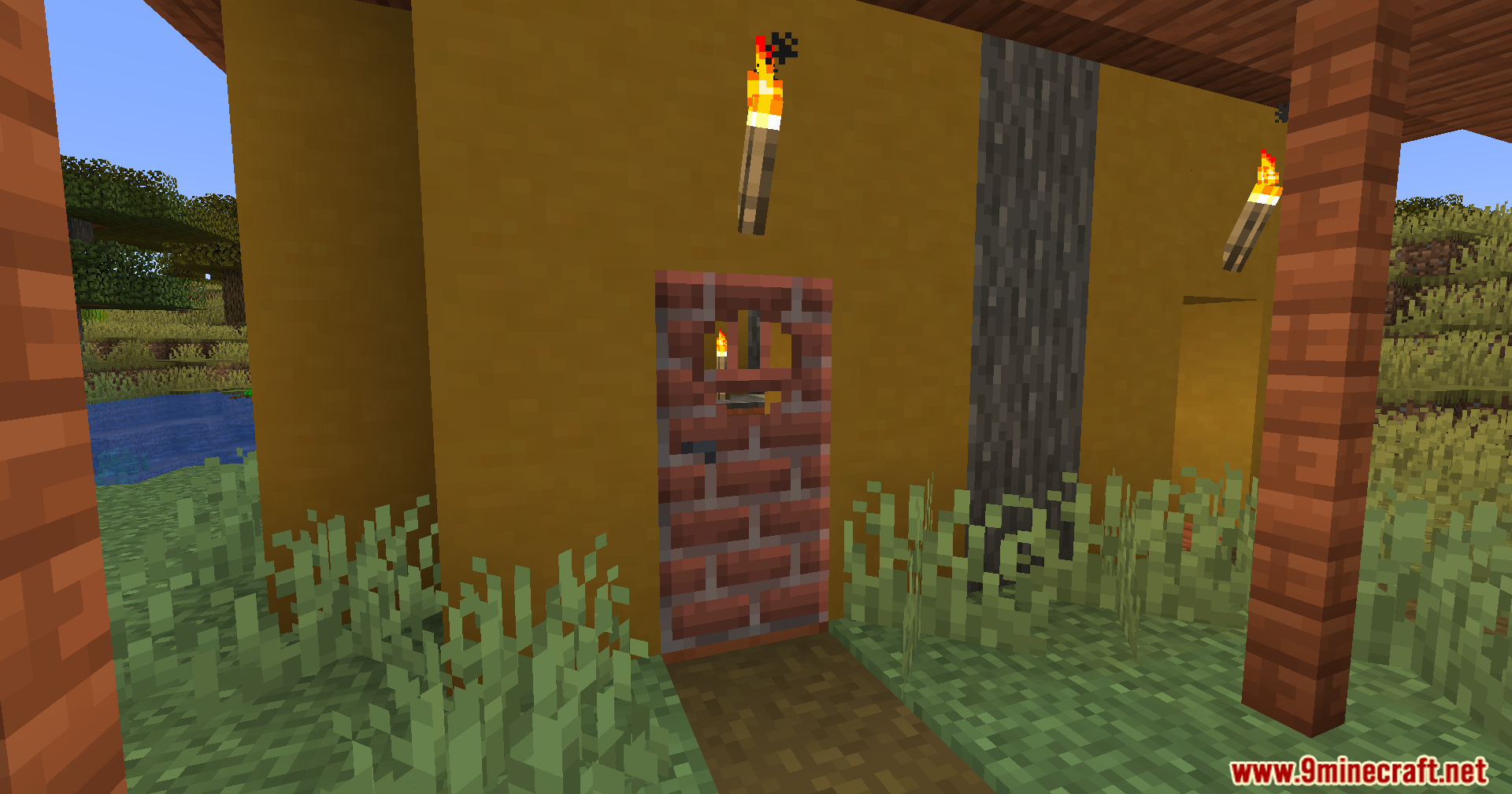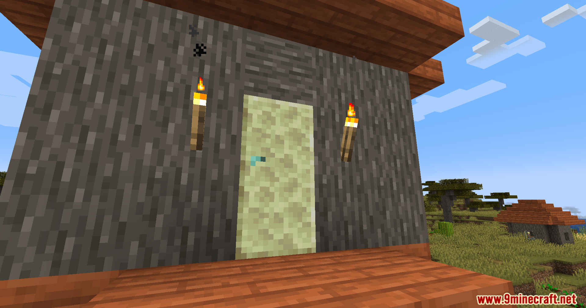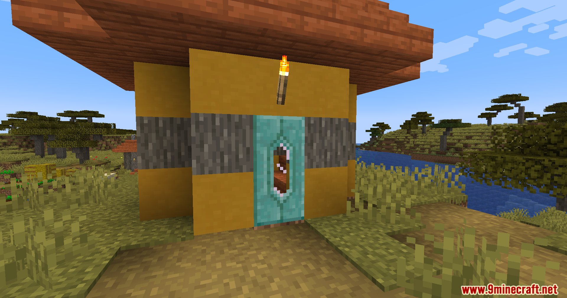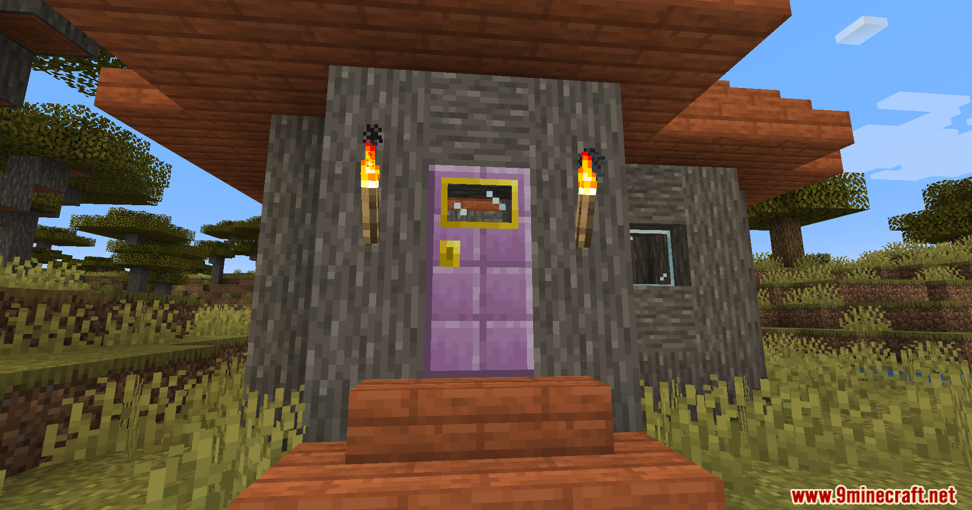 - Adds decorative doors made from materials like Amethyst, Obsidian, Brick, Bookshelf, Prismarine, and Sponge.
