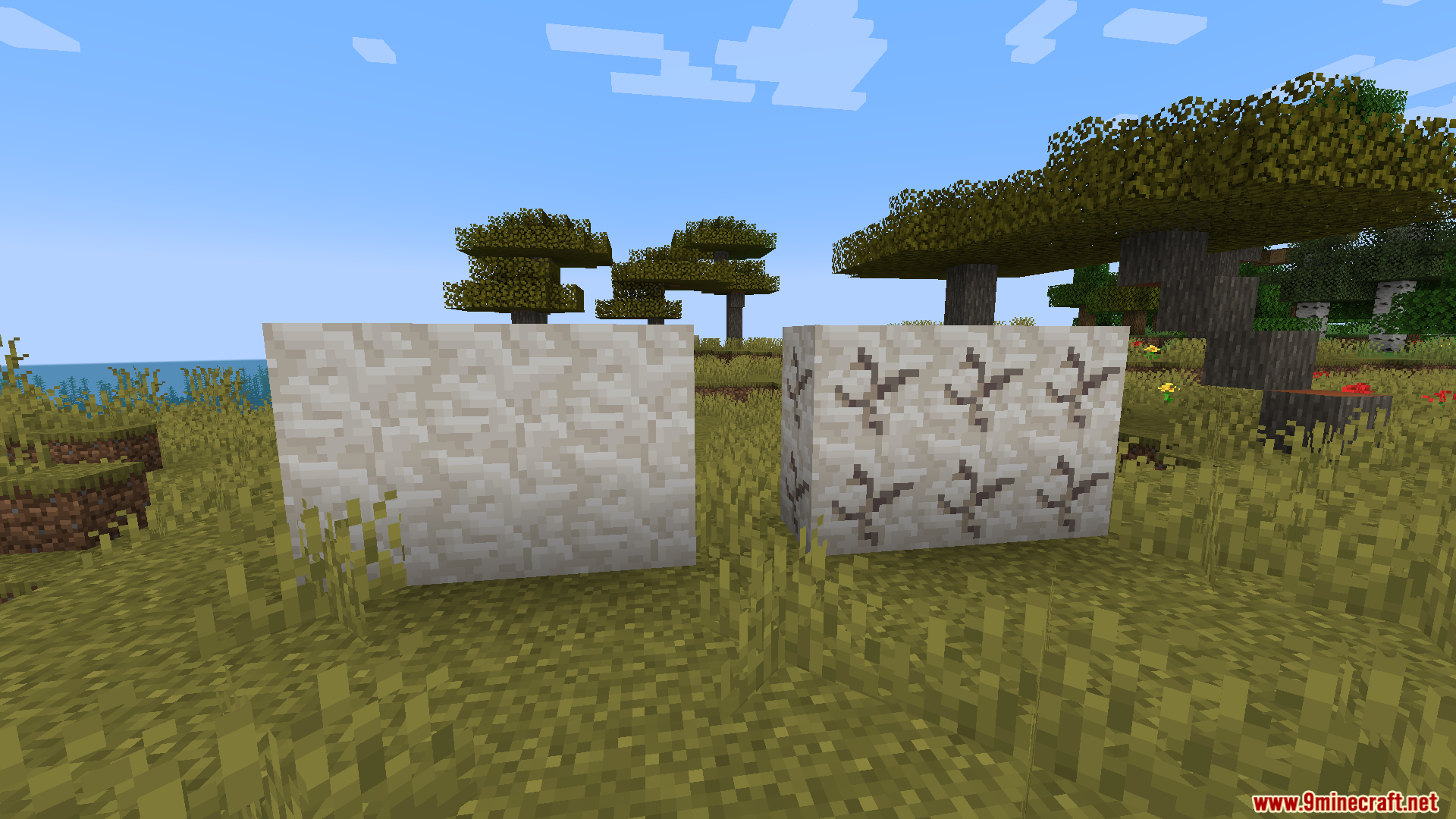 - Gypsum Roses: Surface crystals in deserts and badlands. Harvestable for Gypsum Shards, which can be composted or crafted into sand and decorative blocks.