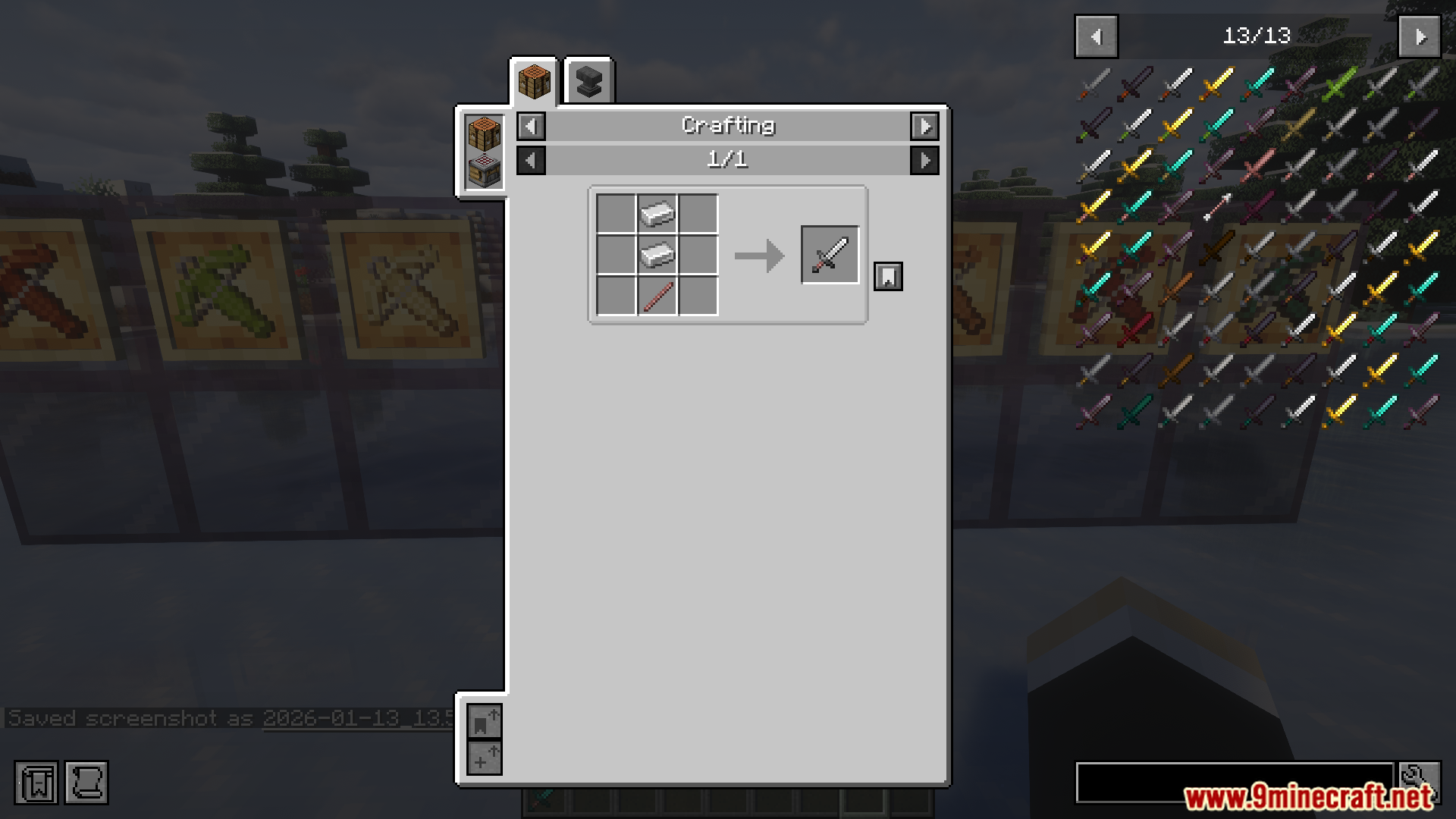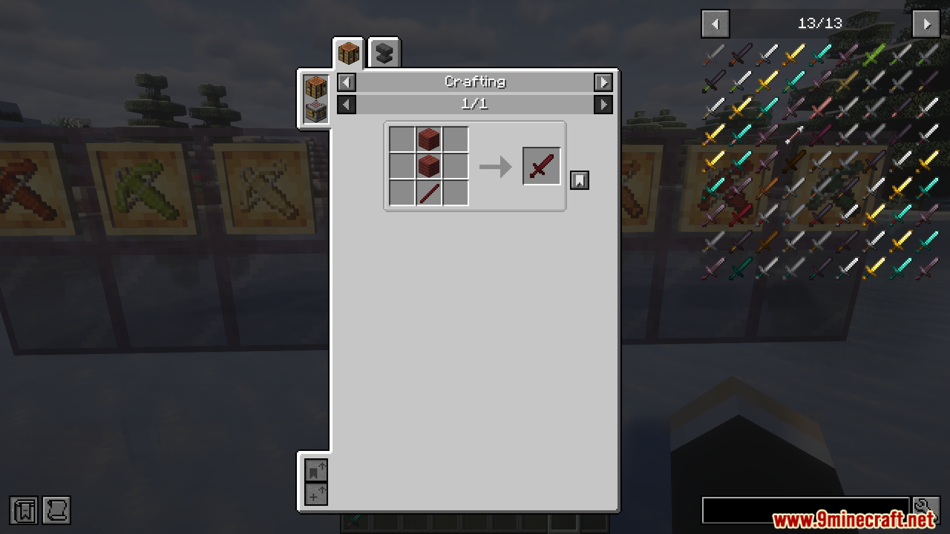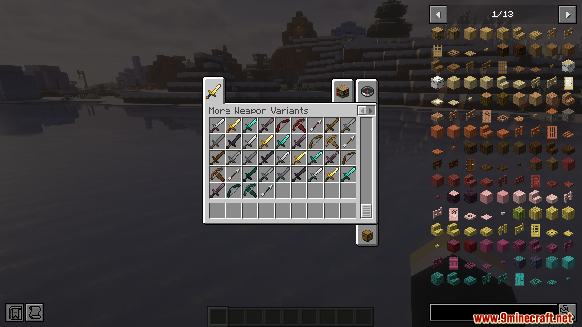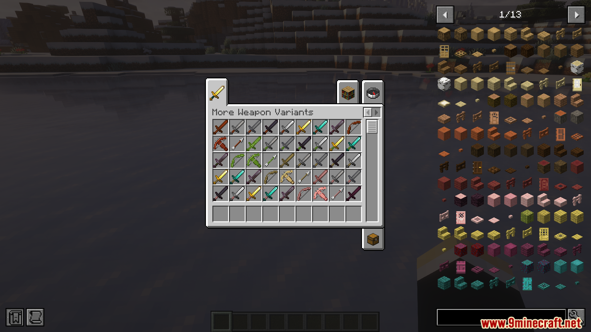 More Weapon Variants Mod (1.21.11, 1.20.1) designed to give players far more choice in weapon crafting. Instead of being limited to vanilla materials, you can now craft weapons from every wood type, Cobbled Deepslate, Blackstone, and more.