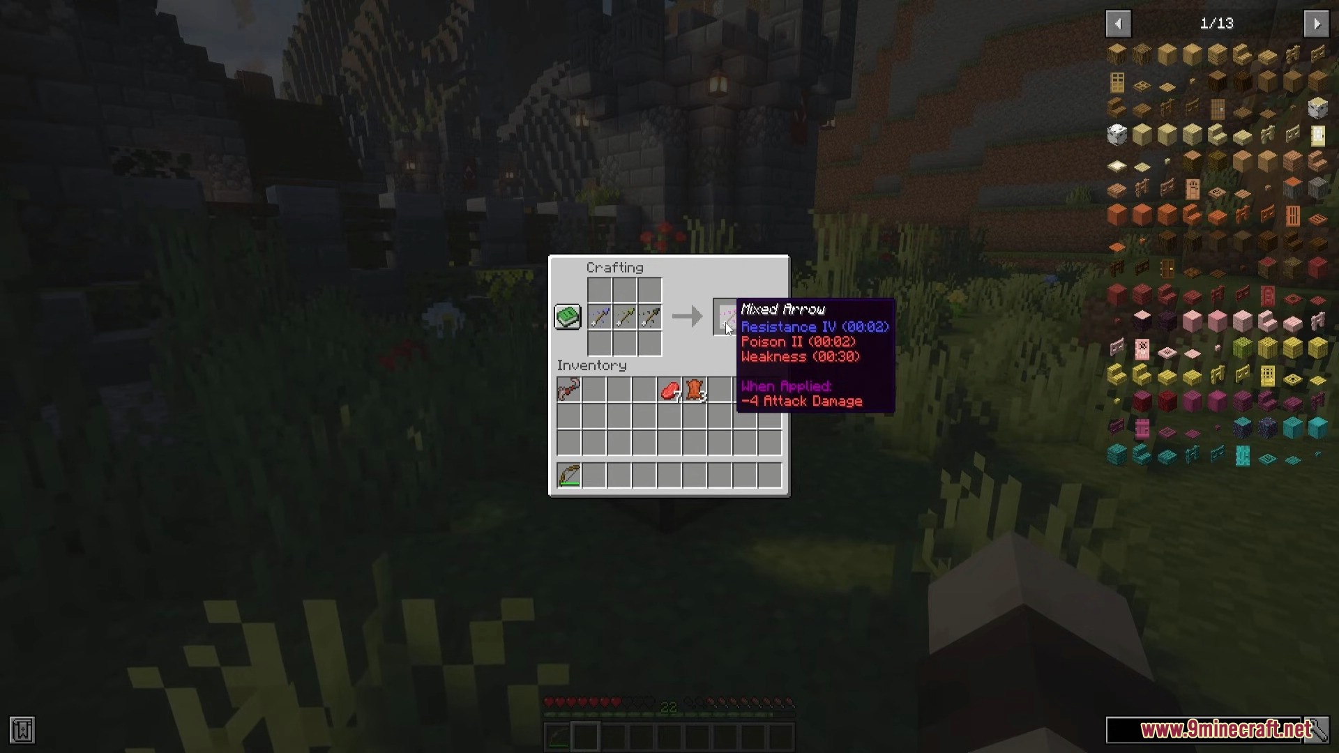 Multi Arrow Effects Mod (1.21.1, 1.20.1) is a mod that allows players to combine multiple potion effects into a single arrow. Instead of using separate arrows for each potion effect, you can merge them together to create more powerful and strategic projectiles. The mod introduces a crafting system where potion arrows can be merged, allowing a single arrow to carry multiple effects at the same time.