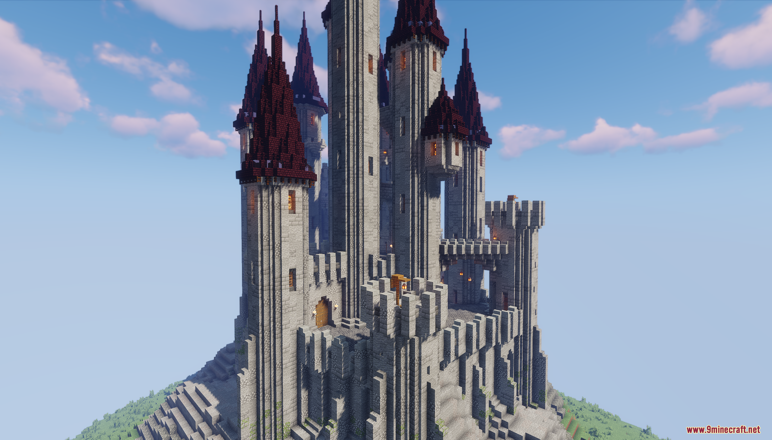 Munamon Castle Map (1.21.11, 1.20.1) takes you to a majestic medieval fantasy fortress built atop a rocky hill, dominated by soaring towers and sharp spired rooftops. Its imposing silhouette and layered stone defenses give it a classic fairytale feel, perfect for exploration, roleplay, or cinematic scenes. With detailed interiors and even a hidden easter egg tucked beneath the castle, this build rewards curious players who venture beyond its grand exterior.