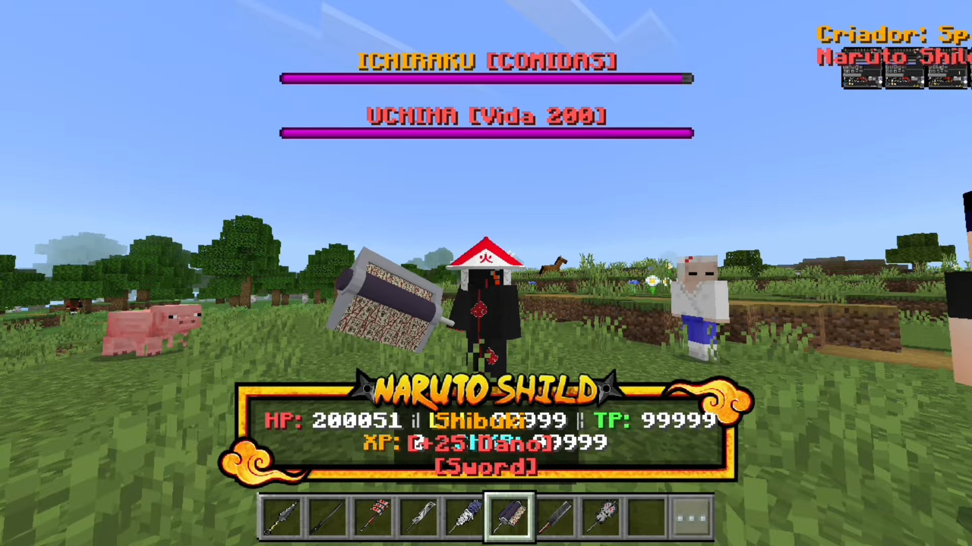 - Weapons and Swords: Highly detailed 3D models including Kusanagi Sword in both White and Black versions, Shibuki (explosive sword), Temari’s Giant Fan (Leque), Cleaver (Cutelo), Hidan’s Triple Scythe (Foice Tripla, fully modeled in 3D), and Kisame’s Kubikiribōchō (Executioner’s Blade, fully modeled); many are craftable or dropped from mobs, featuring custom attack animations and anime-accurate sounds.