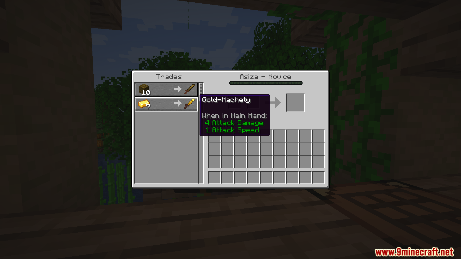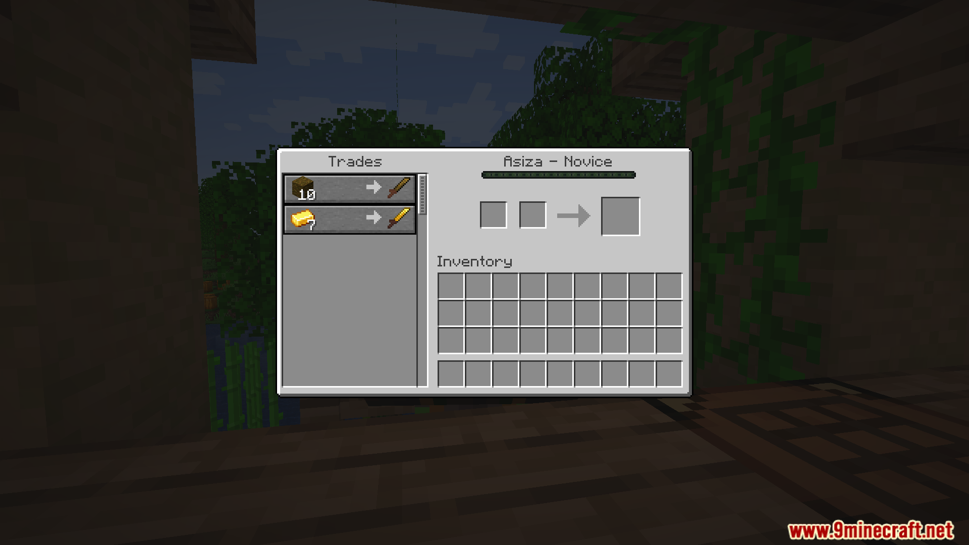 - The trader uses a Block of Bamboo as their workstation.