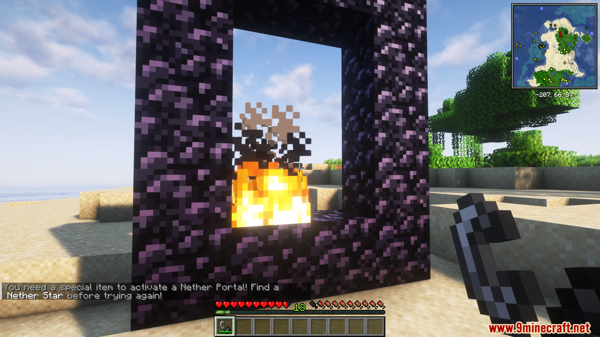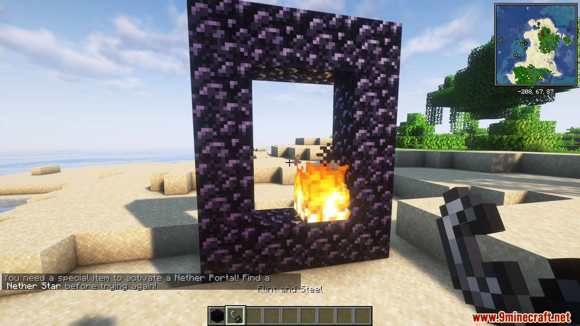 - Set a specific item (default: Nether Star) via config to activate Nether portals, preventing activation by flint and steel or lightning without it.