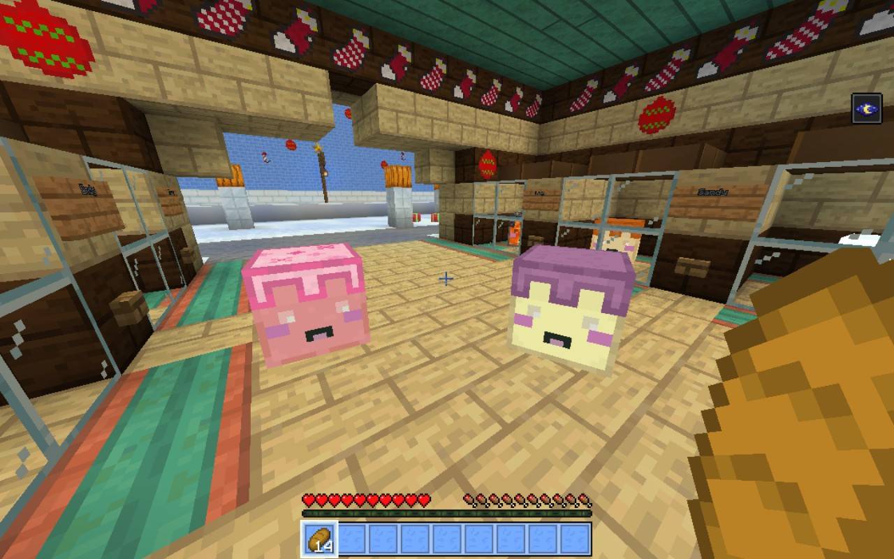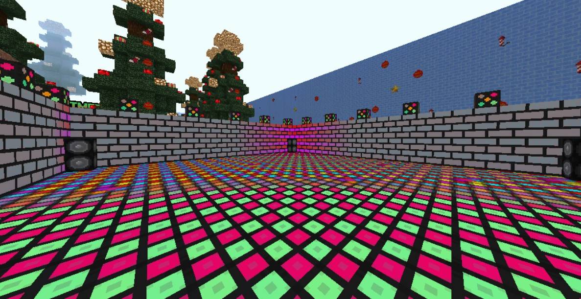 New Year Map 2025 2026 Map (1.21, 1.20) provides a New Year’s celebration space with various shops and mini-games. Players can purchase pastries, candles, and fast food items such as sandwiches, pizza, or soft drinks. The map includes activities such as target shooting, ice boat racing, hole jumping, and climbing to earn rewards. A long roller coaster system is also set up to move around the area.