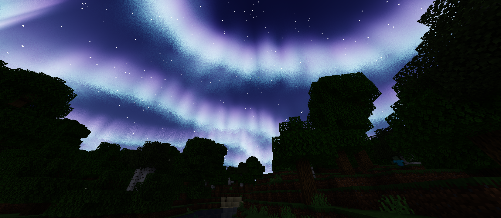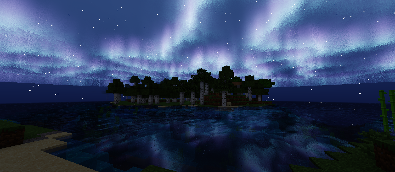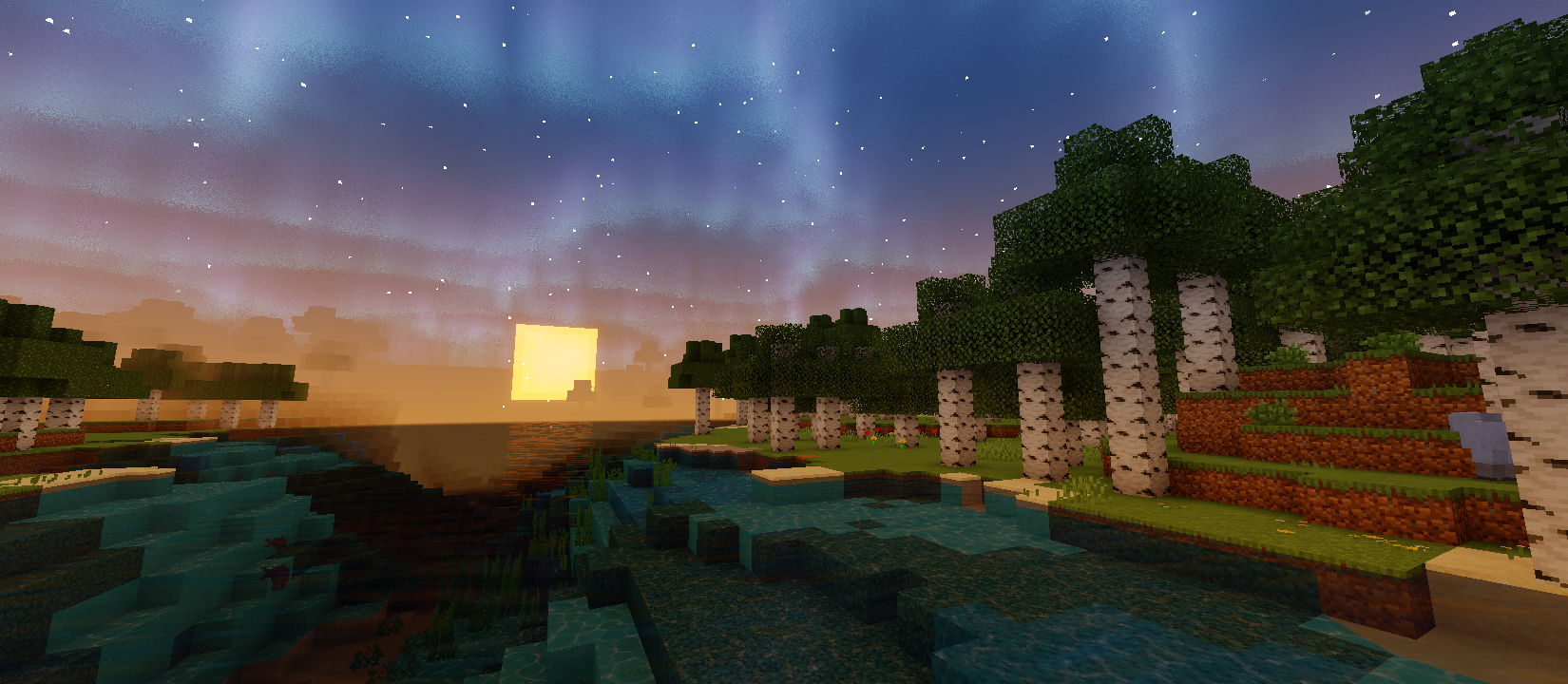 - Lighting: Richer world colors, vibrant auroras, sharp noise-based godrays, and crisp shadows that react naturally to light sources.