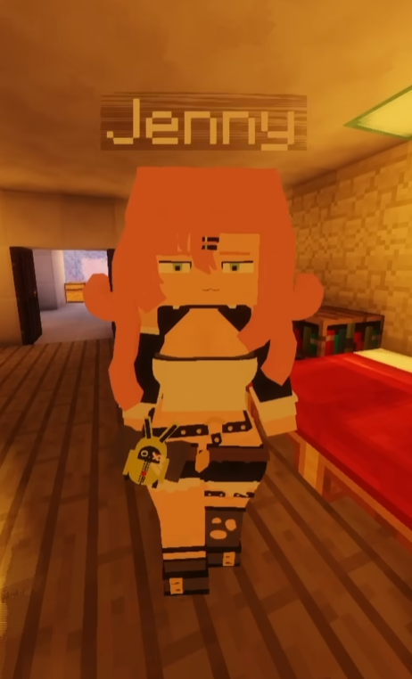 Nicole Demara Jenny Mod Model is inspired by the custom waifu entity of Nicole Demara (sassy pink-haired leader of the Cunning Hares mercenary group from Zenless Zone Zero. It features long pink twintails, pink eyes, a white jacket with pink/purple accents, shorts, and thigh-highs. Part of “Melee Waifu Vitality Class” (light green spawn egg; tanky build for combat).