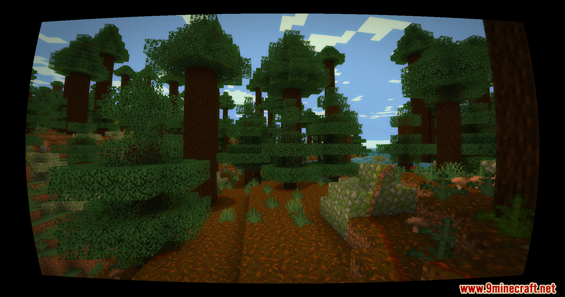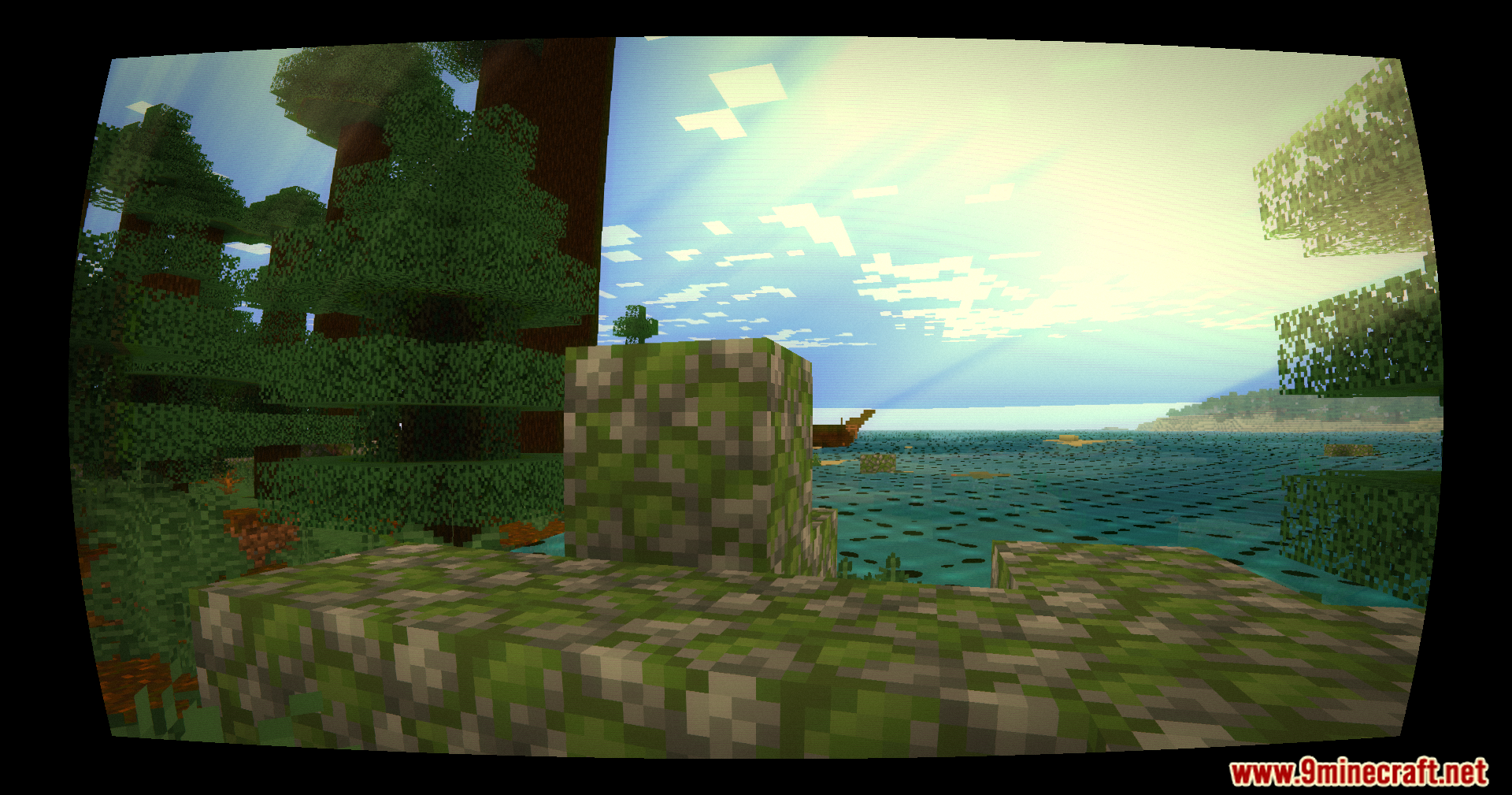Nostalgia-Ultra Shaders (1.21.11, 1.20.1) focuses on color grading, lighting, sky rendering, and water visuals to match the look of the 2011–2013 era. It uses warm, saturated colors, a bright blue sky, vibrant green grass, and soft lighting similar to classic releases. Optional CRT-style effects further reinforce the retro presentation.