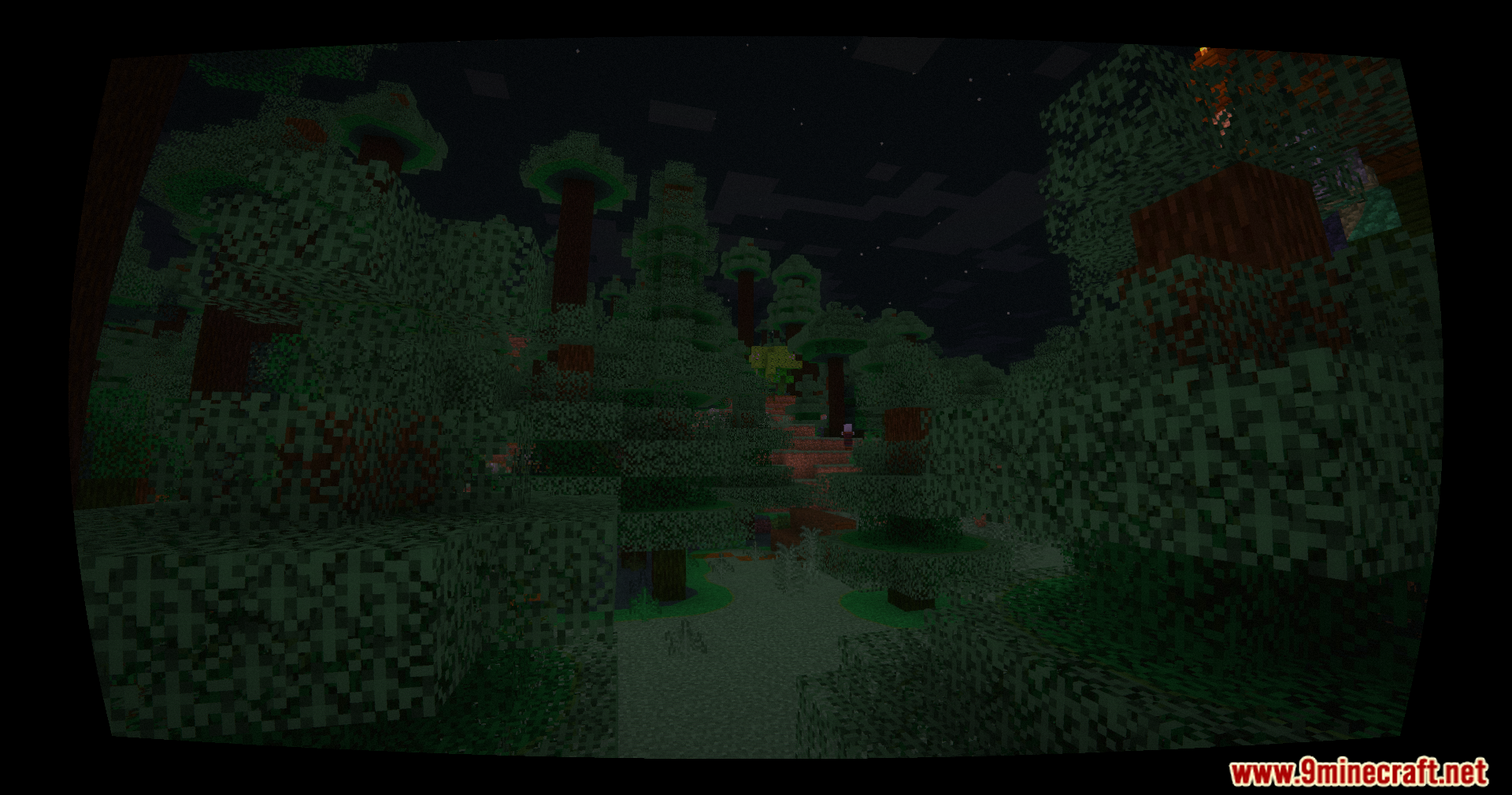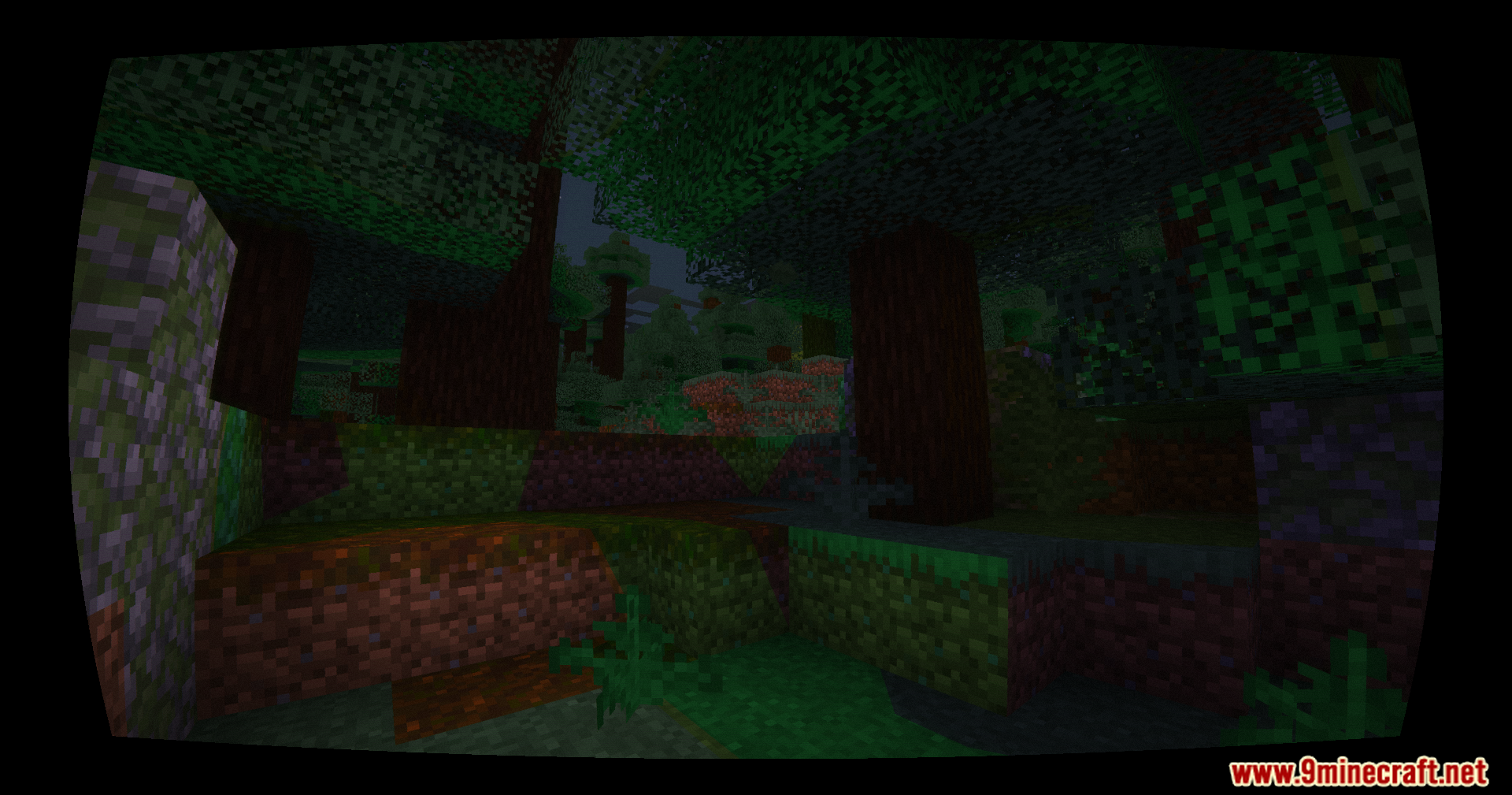- Blood-red Nether with dense fog
