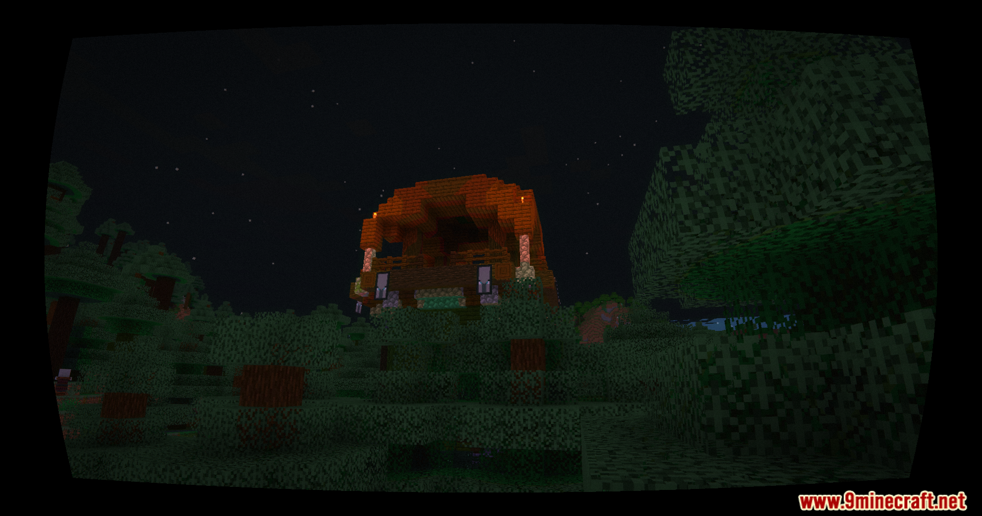 - Warm orange torch lighting