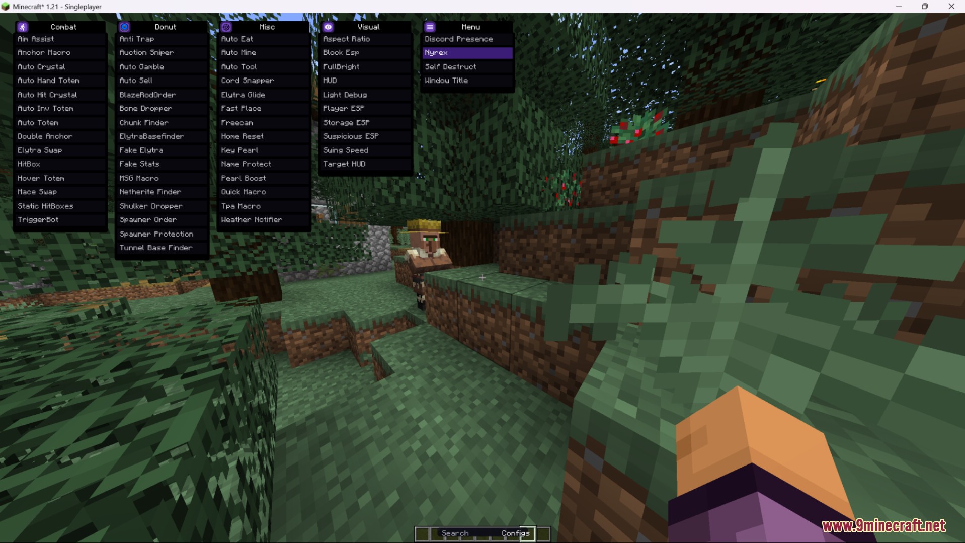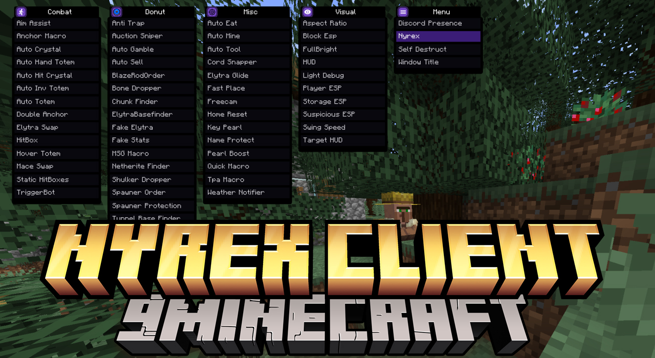 Nyrex Client Mod (1.21.1) provides a powerful automatic combat system, advanced utility tools, ESP & visual features for better awareness, along with various macros and automation that give players a major advantage in PvP, raiding, base hunting, and long-term survival.
