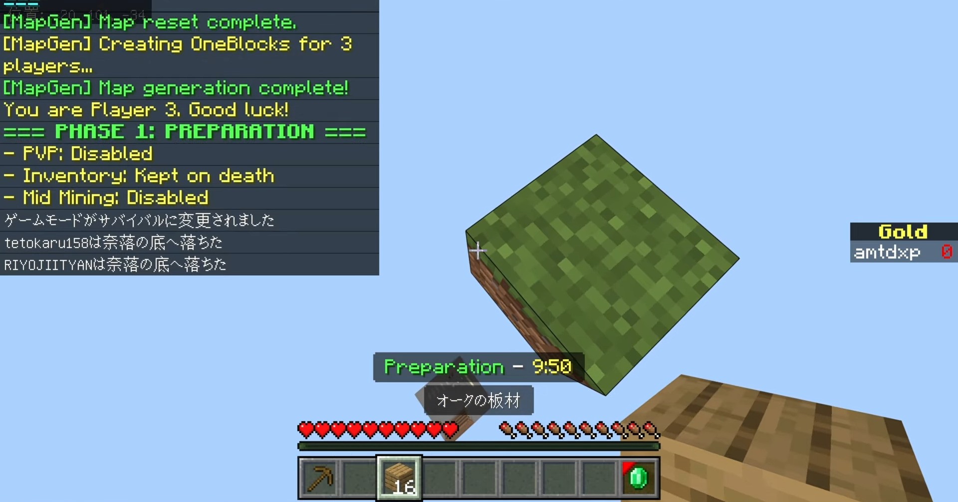 - Phase 1: Preparation (10 min): PvP is disabled. Focus on gathering resources and building your fortress. Keep Inventory is ON.