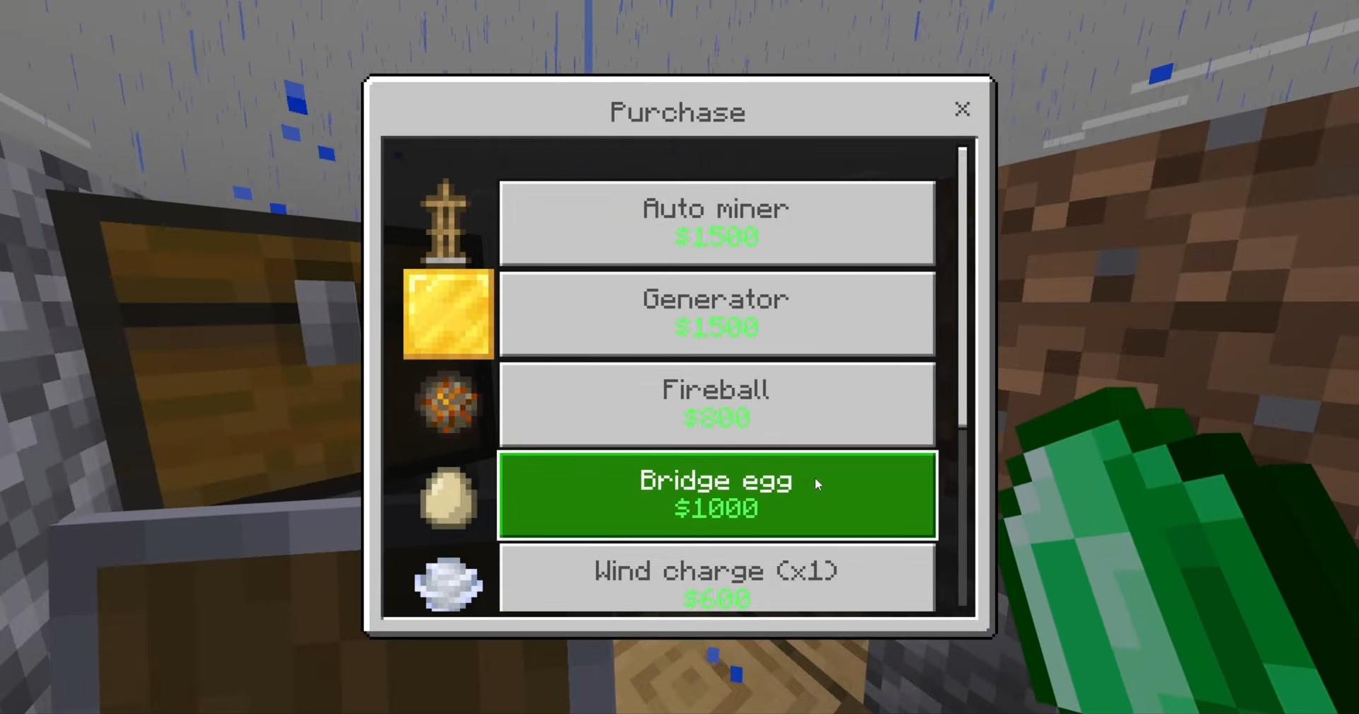 - Bridge Egg: Create a wool bridge instantly as you throw it.