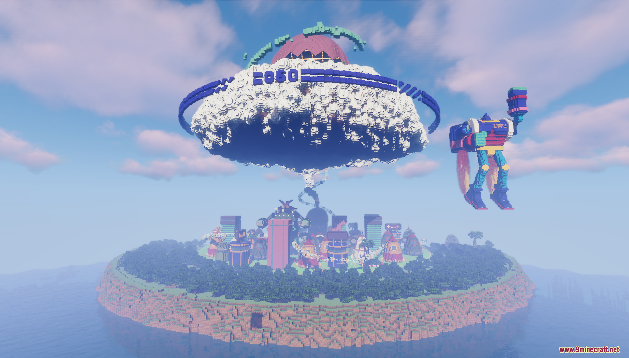 One Piece Egghead Island Map (1.21.11, 1.20.1) is a large-scale Minecraft build inspired by Egghead Island, a treat for One Piece fans! The map is designed to be placed directly into a vast ocean and scaled all the way up to the game’s build limits. Floating above the sea, the island features a futuristic layout with bold shapes and structures that are easy to explore and admire, even for new players. All in all, this map offers an impressive and accessible world to build stories around.