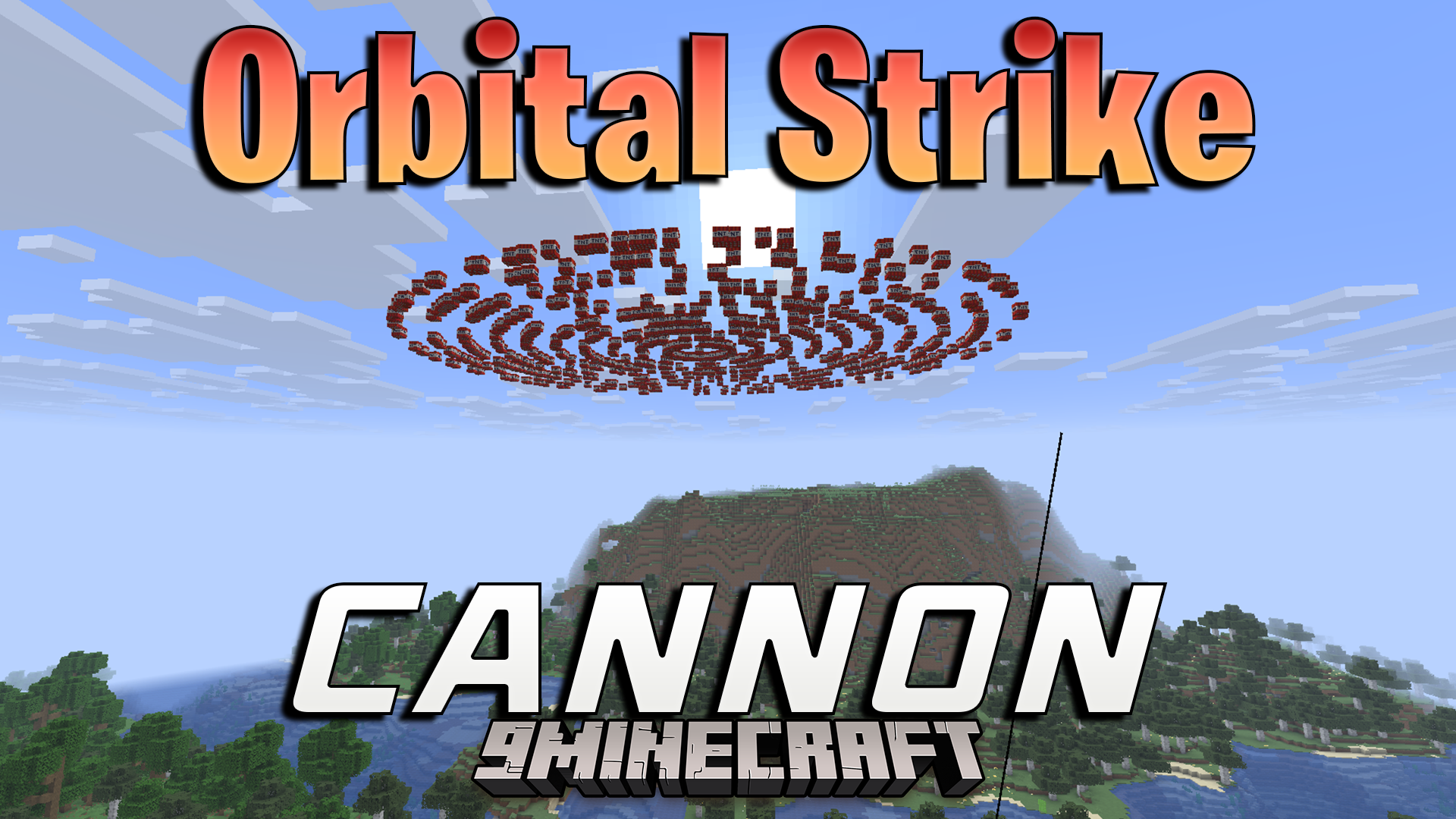Orbital Strike Cannon Mod adds a powerful orbital cannon mechanic, letting players call down massive TNT strikes, precision blasts, or cinematic nukes using commands or a special fishing rod.