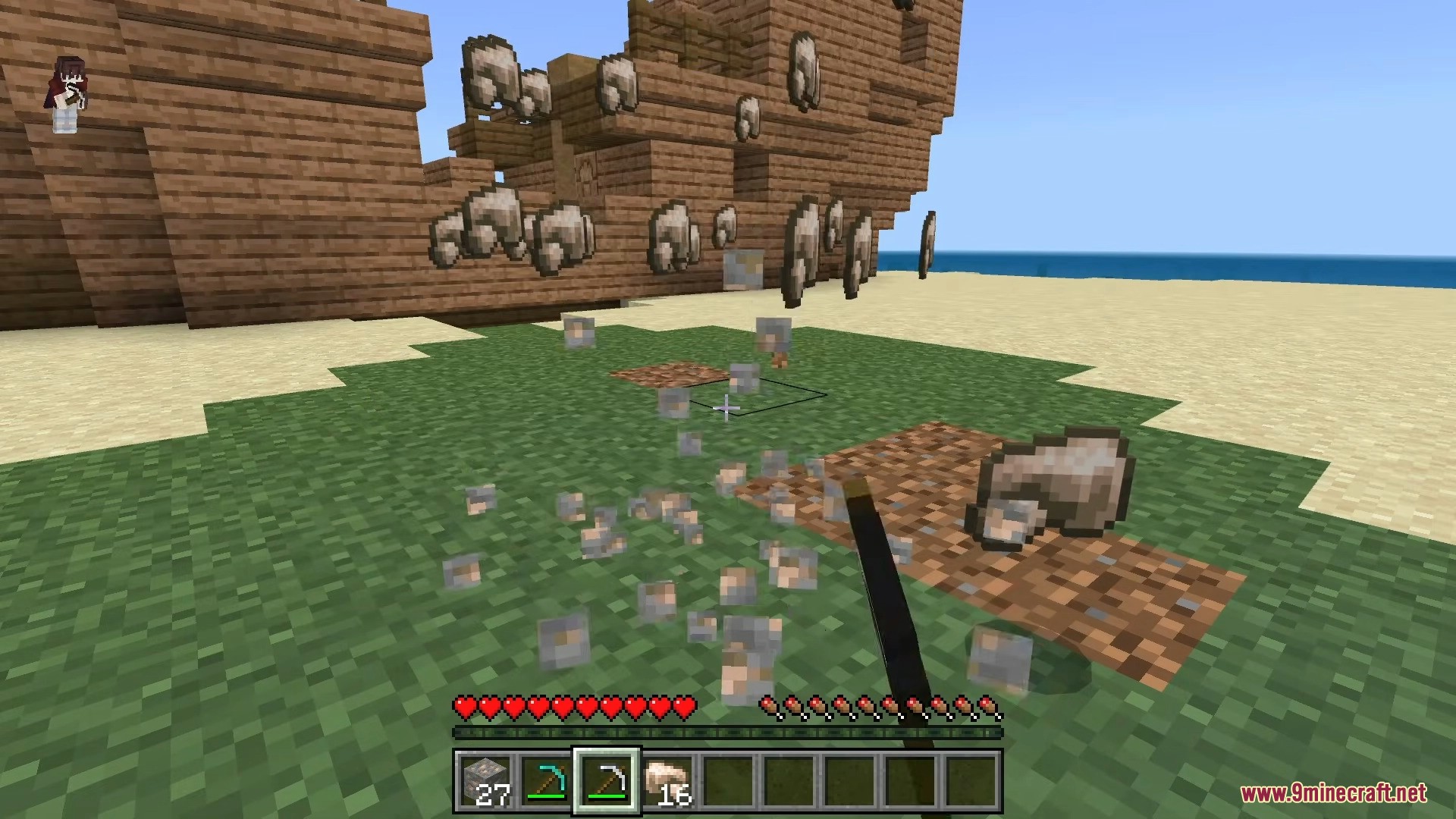 - The entire connected vein is mined instantly
