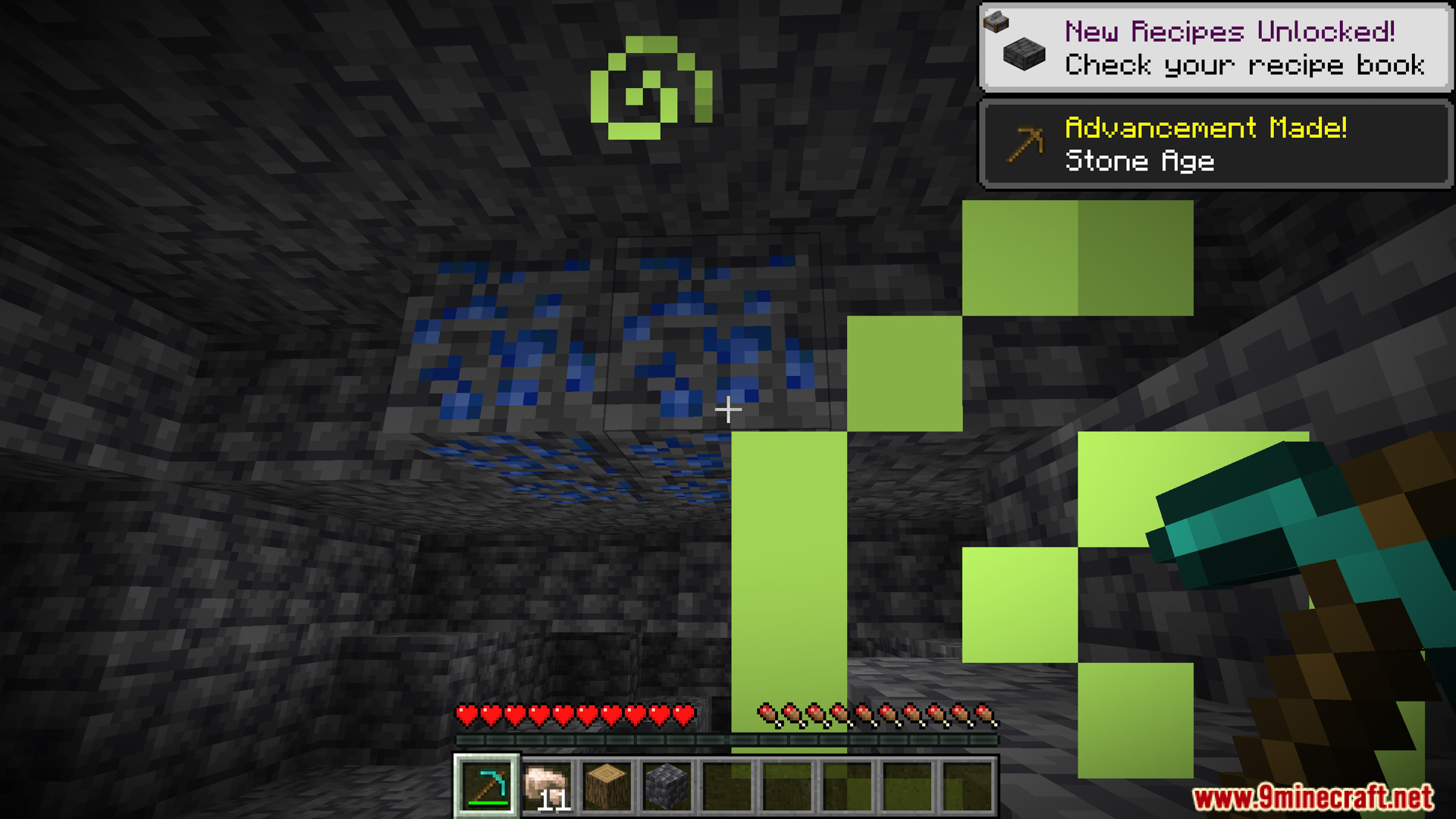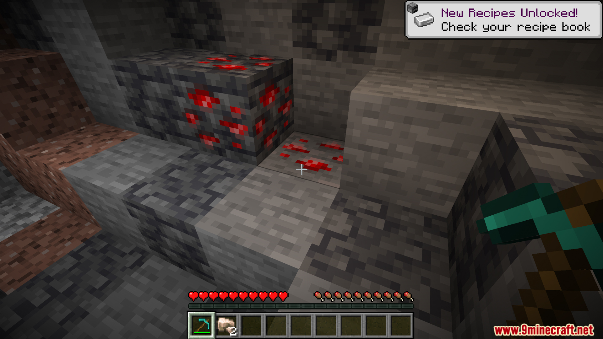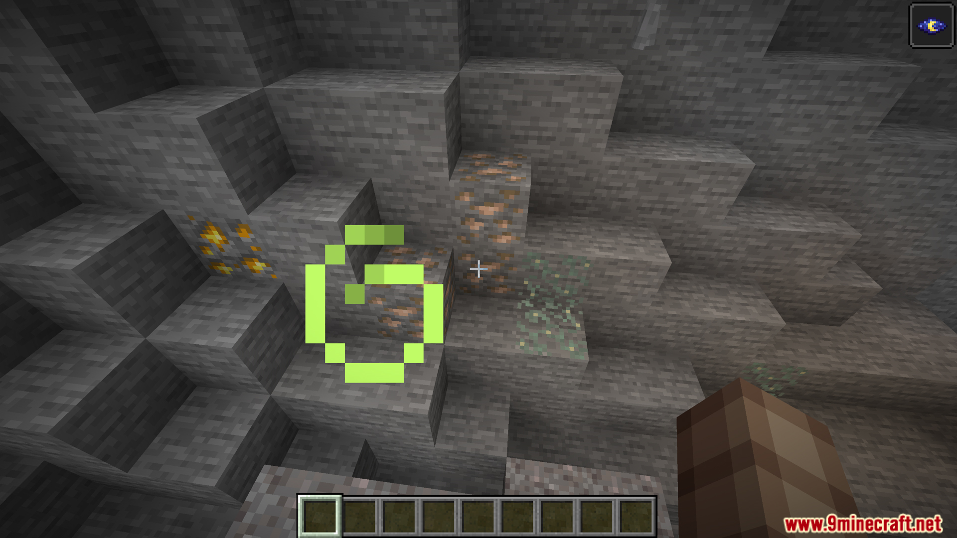 - When you crouch/sneak and destroy an ore block with a pickaxe, the mod will immediately destroy all ore blocks of the same type connected to that block.