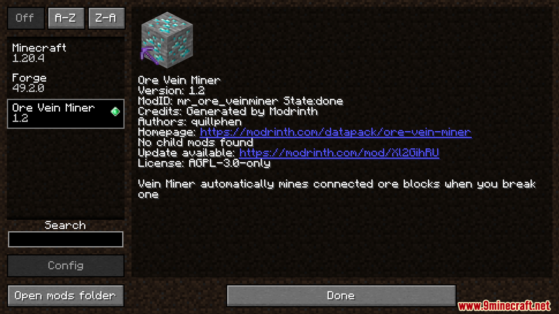 Ore Vein Miner Mod (1.21.11, 1.20.1) Download Links