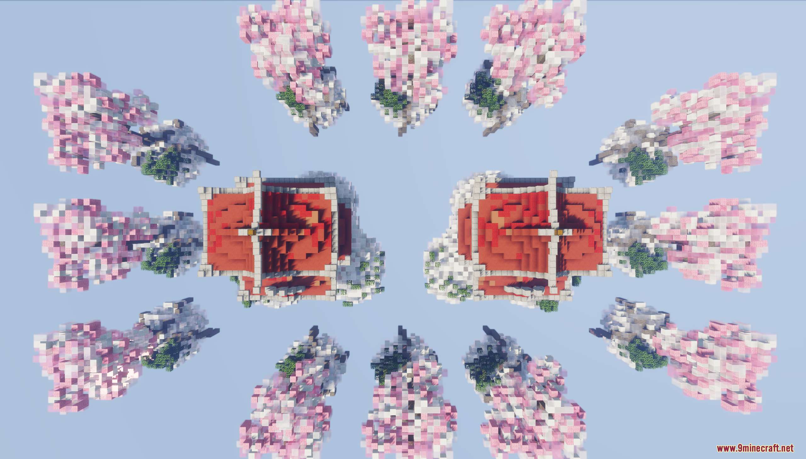 Oriental Skywars Map (1.21.10, 1.20.1) invites you to battle among the clouds in a beautiful world of cherry blossoms and eastern architecture. Each player begins on a floating island draped in pink petals, with graceful bridges framing the skies. The arena’s most unique twist lies in its dual centers — two opposing hearts of the map that challenge your strategy and control. Beautiful, balanced, and filled with charm, this SkyWars arena turns every fight into a serene yet thrilling experience.