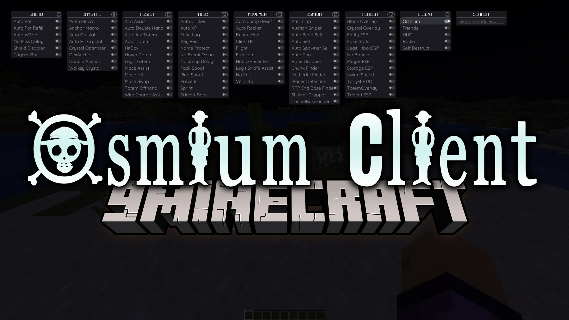 Osmium Client Mod (1.21.1) is a Ghost Client specialized for Crystal PvP. It has a powerful set of modules and combos for sword PvP such as: automatically holding a Totem, aim-assist and death-avoidance, assistance with combat actions, movement and detection-evasion support, and enhanced wall-penetrating vision and combat HUD.